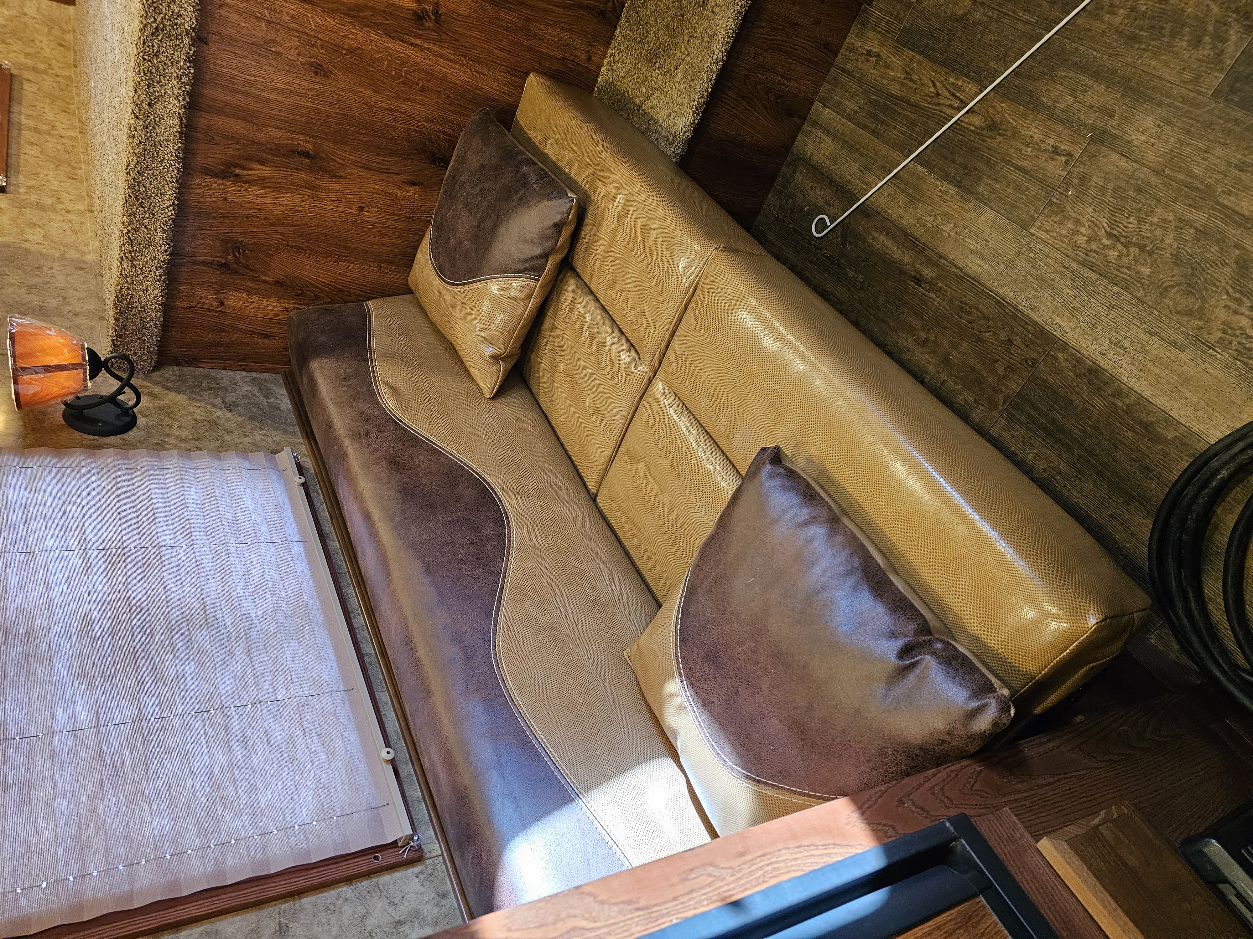 - Wood grain linoleum floors