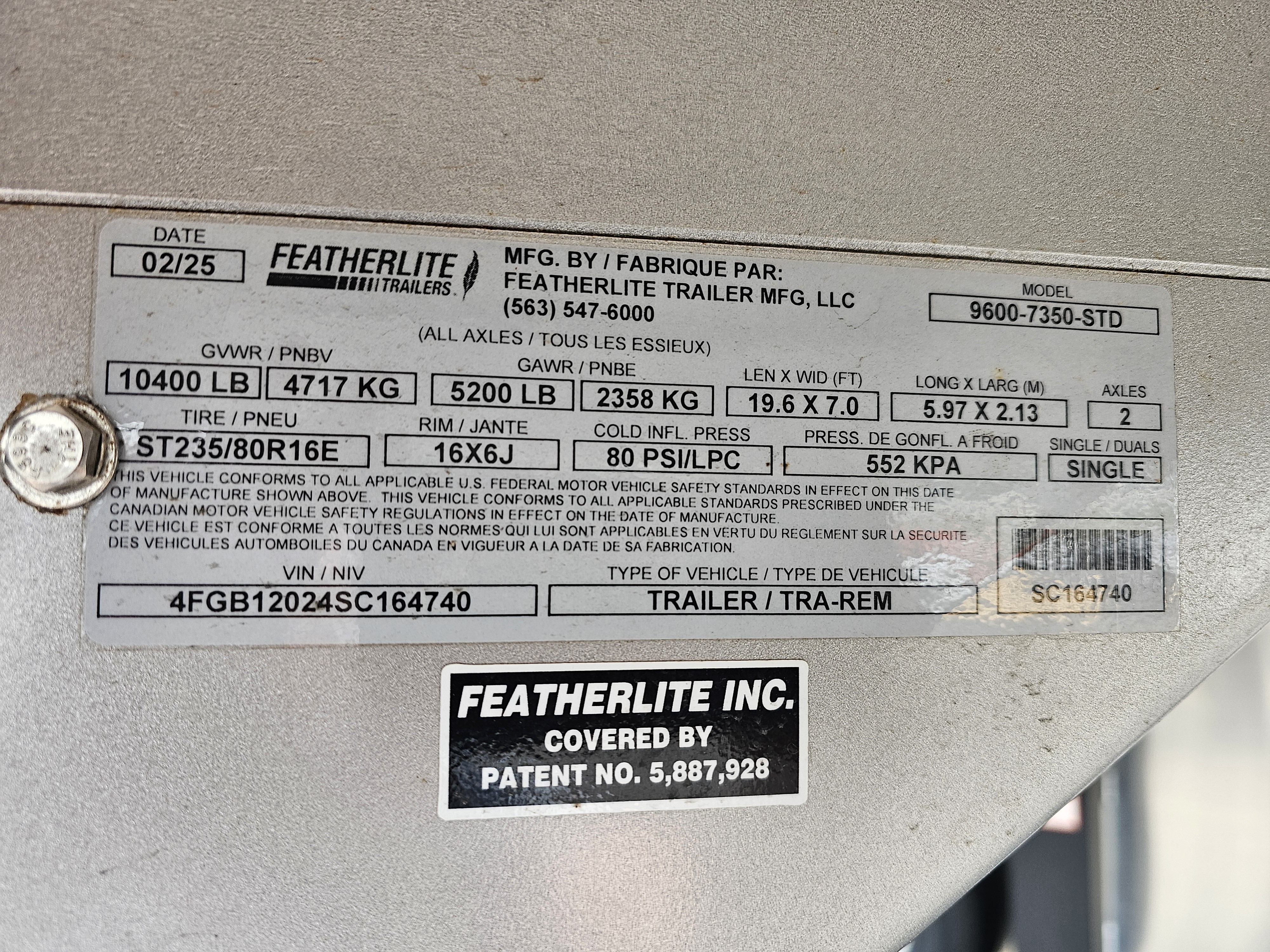 • (2) 5,200 lbs rubber torsion axles w/electric brakes