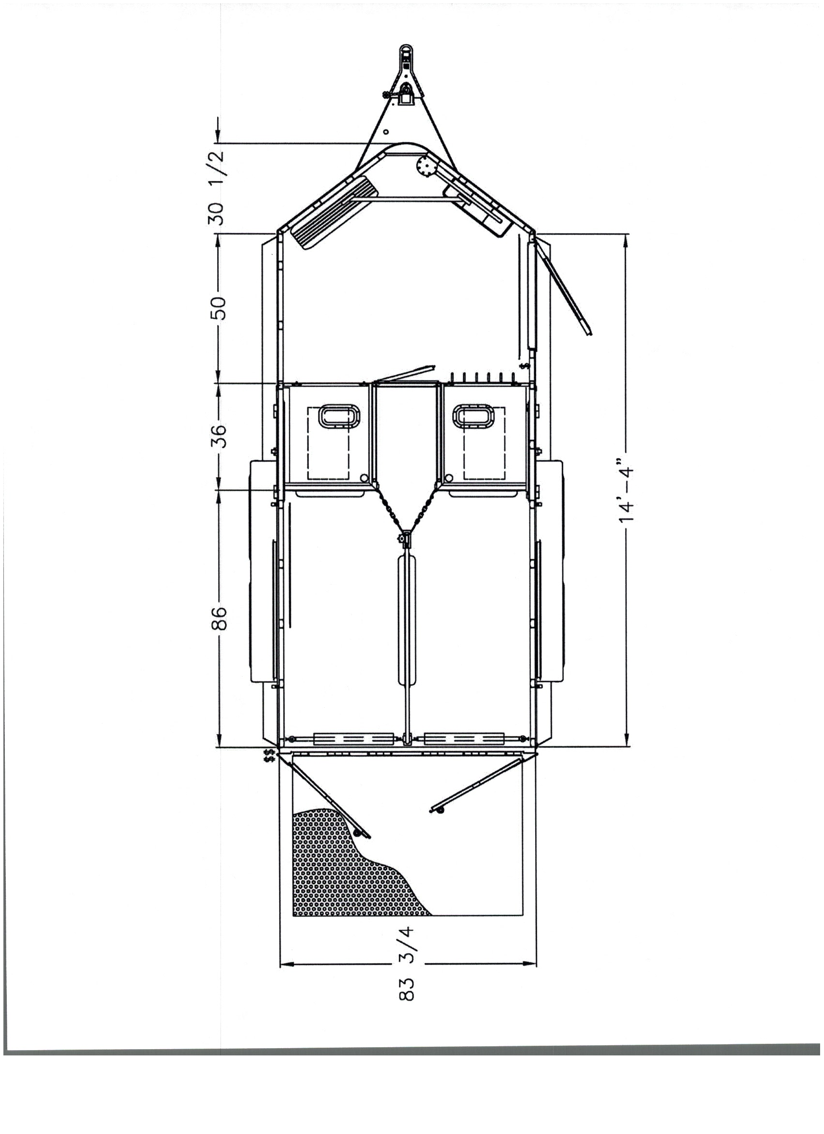 Unload Doors-36' x 74" square camper door with drop down feed door on each side of horse area