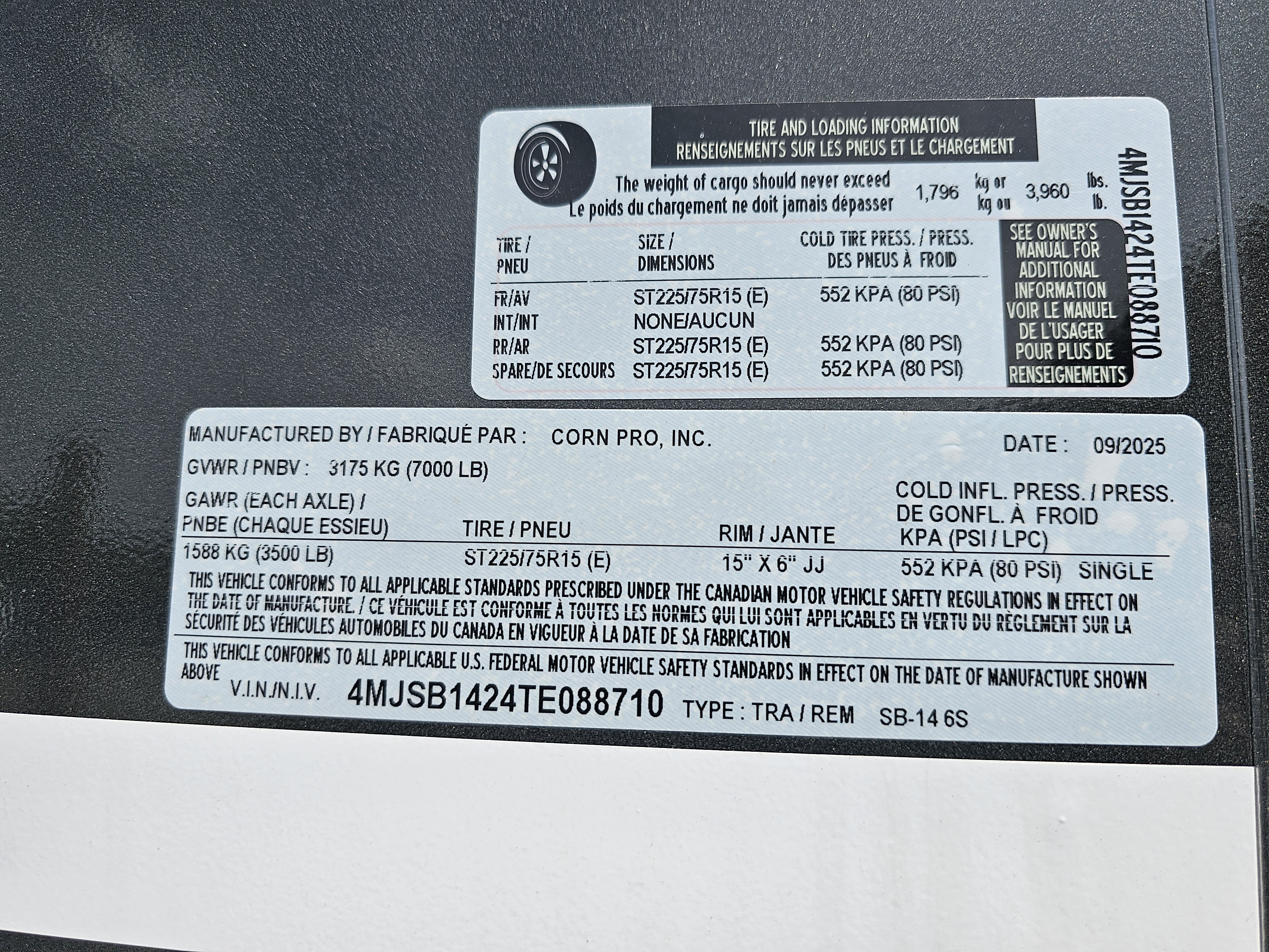 2026 CornPro Trailers SB-S BUMPER SB-14 6S- TE088710