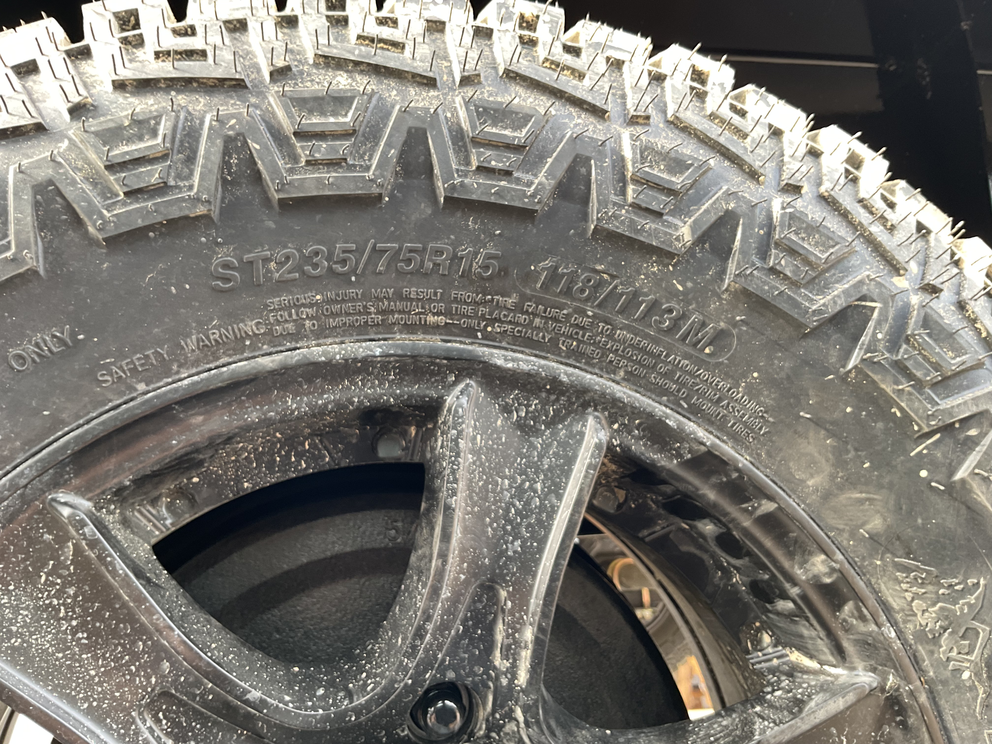 TIRES, ST235/75R15 RADIAL 6 HOLE BLACK ALUMINUM