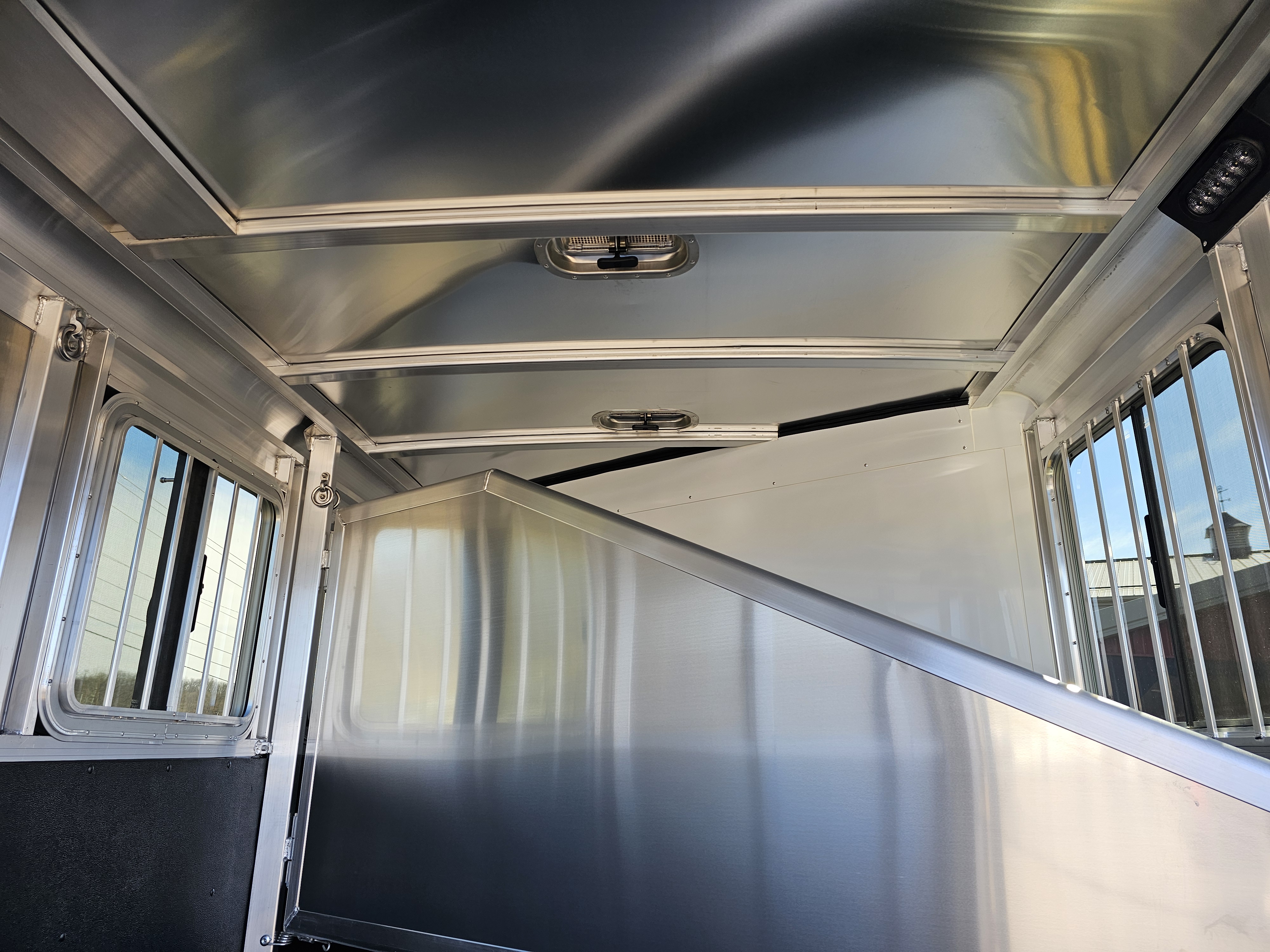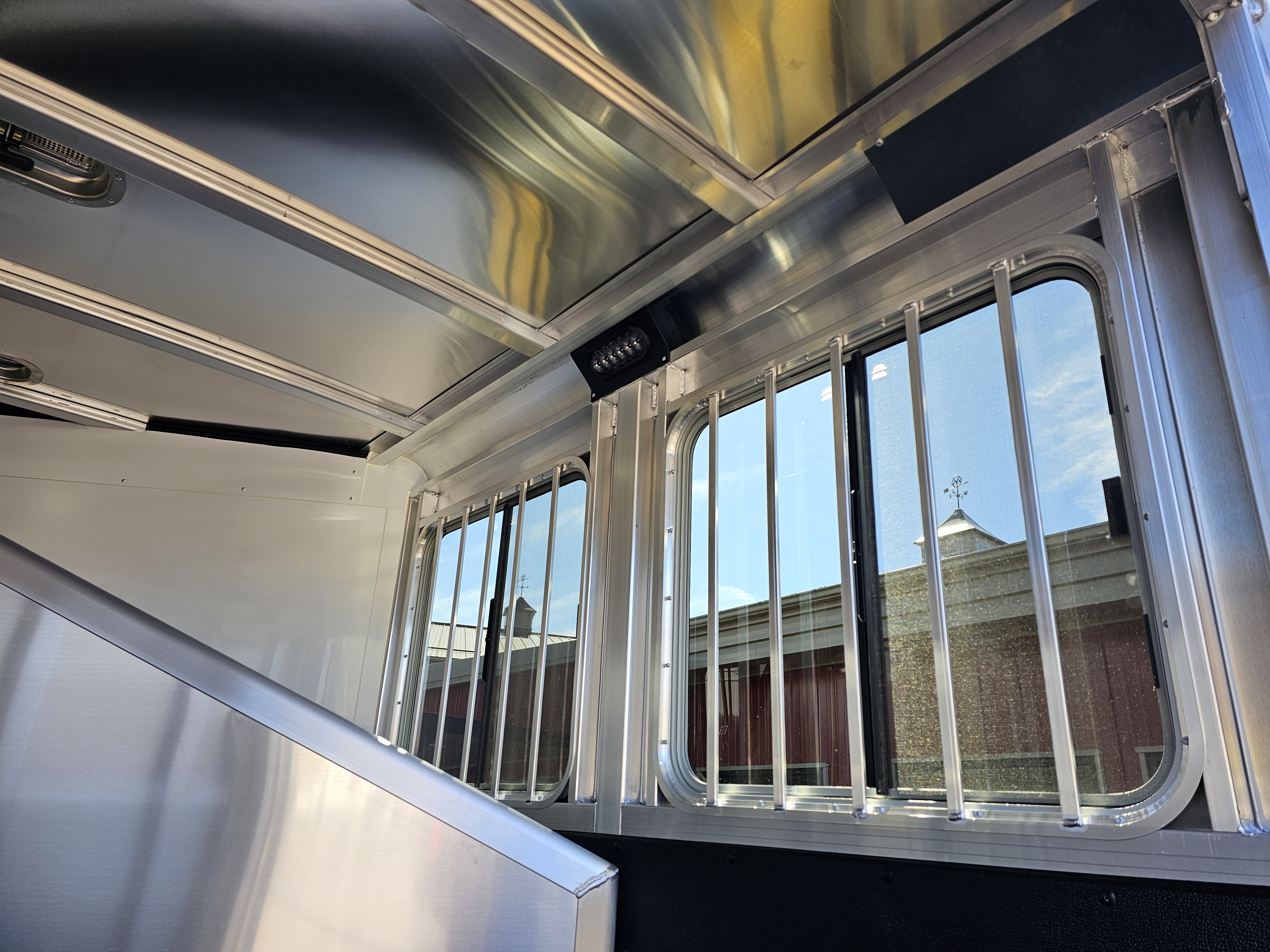 Single piece aluminum roof w/ one roof vent per stall