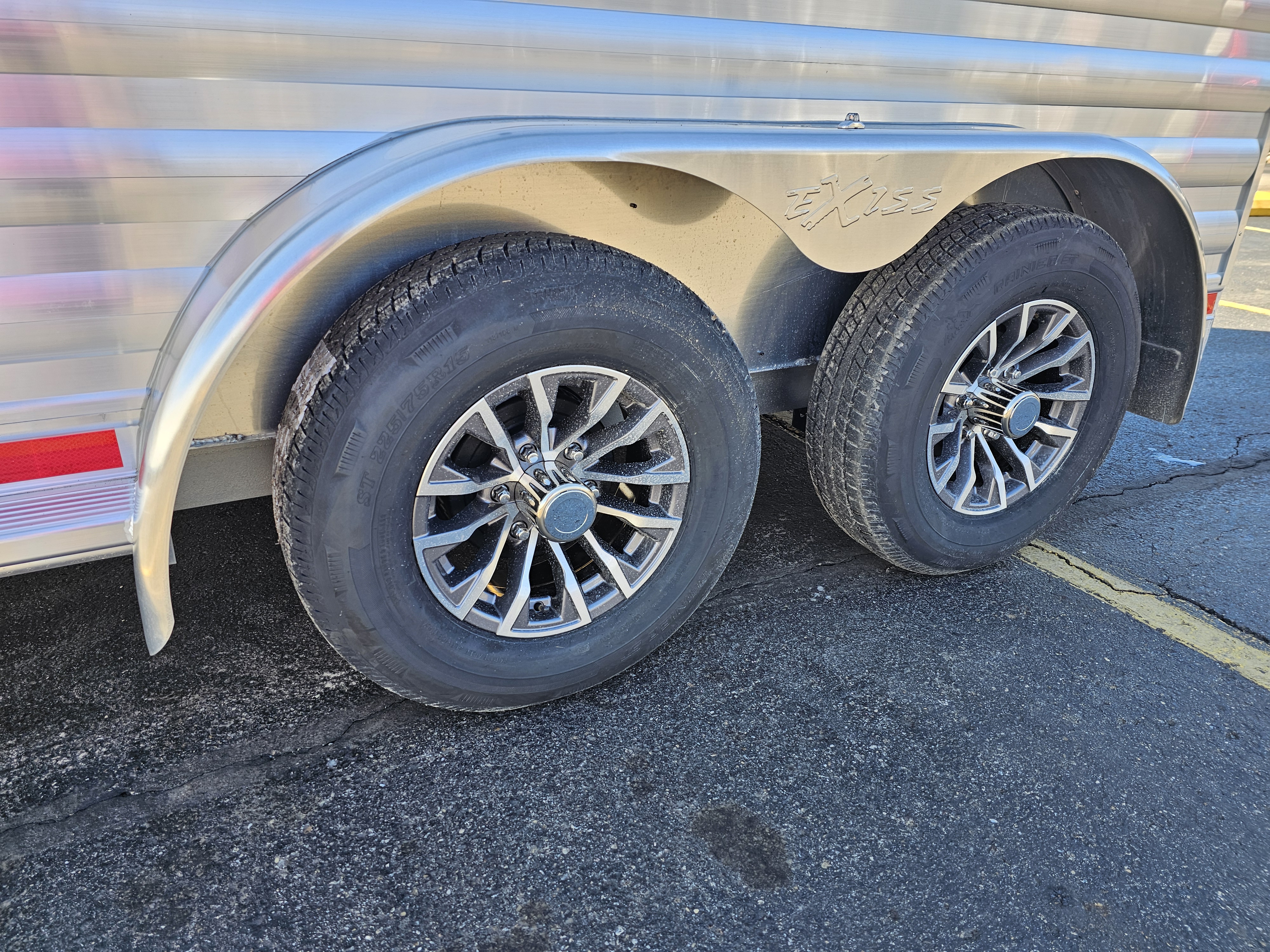 Five 15” 6 hole aluminum wheels w/ 8 ply tires
