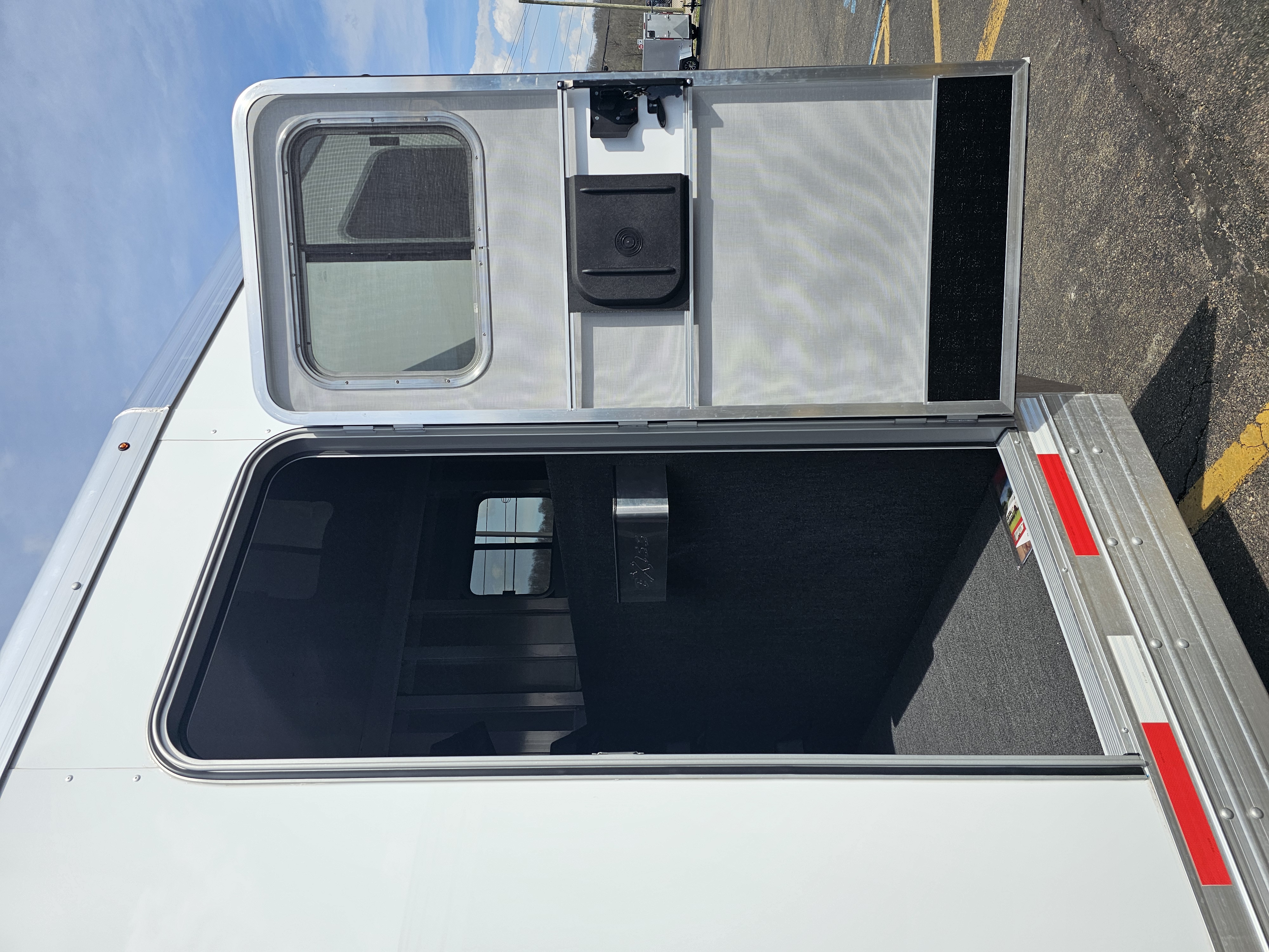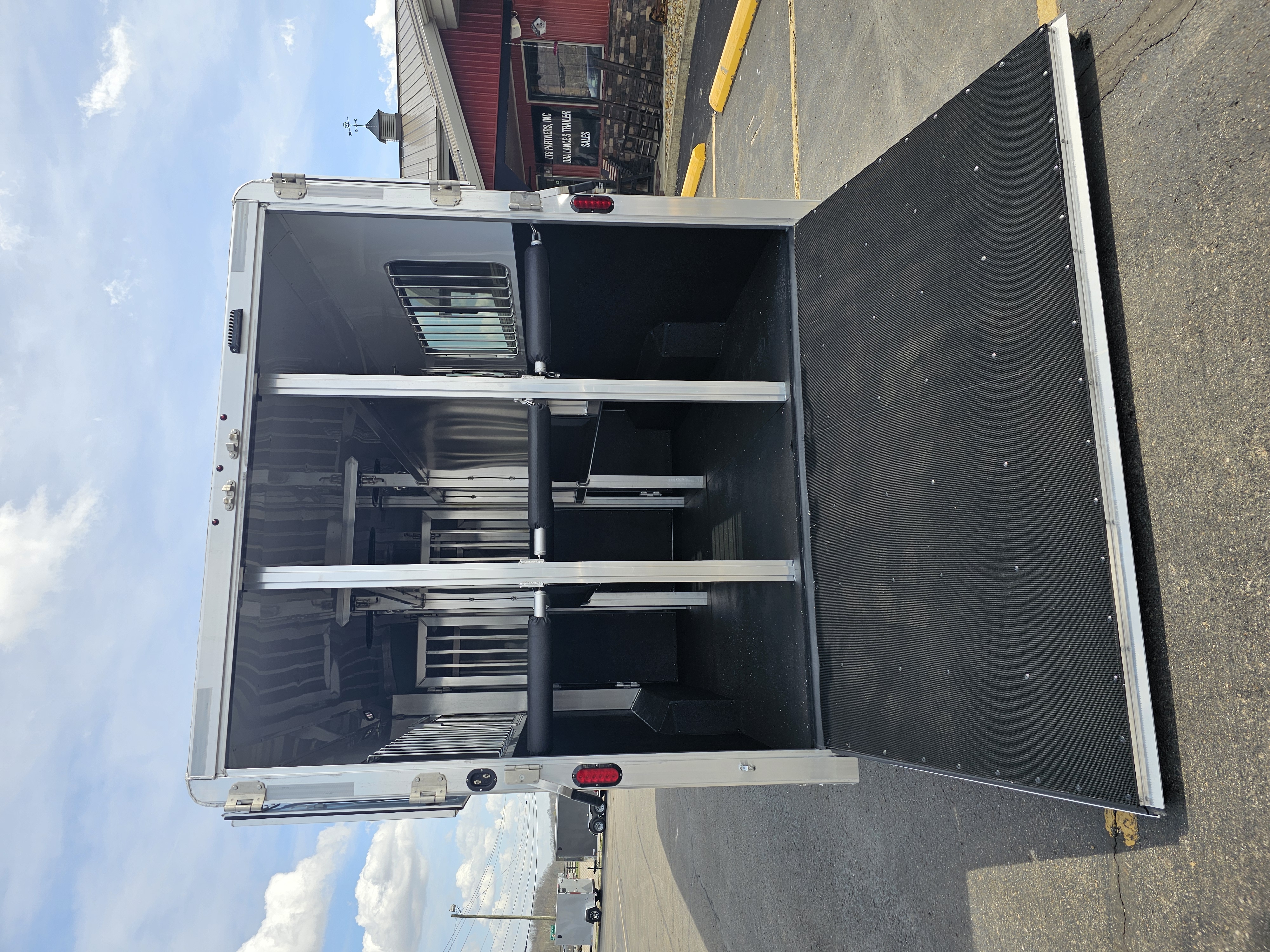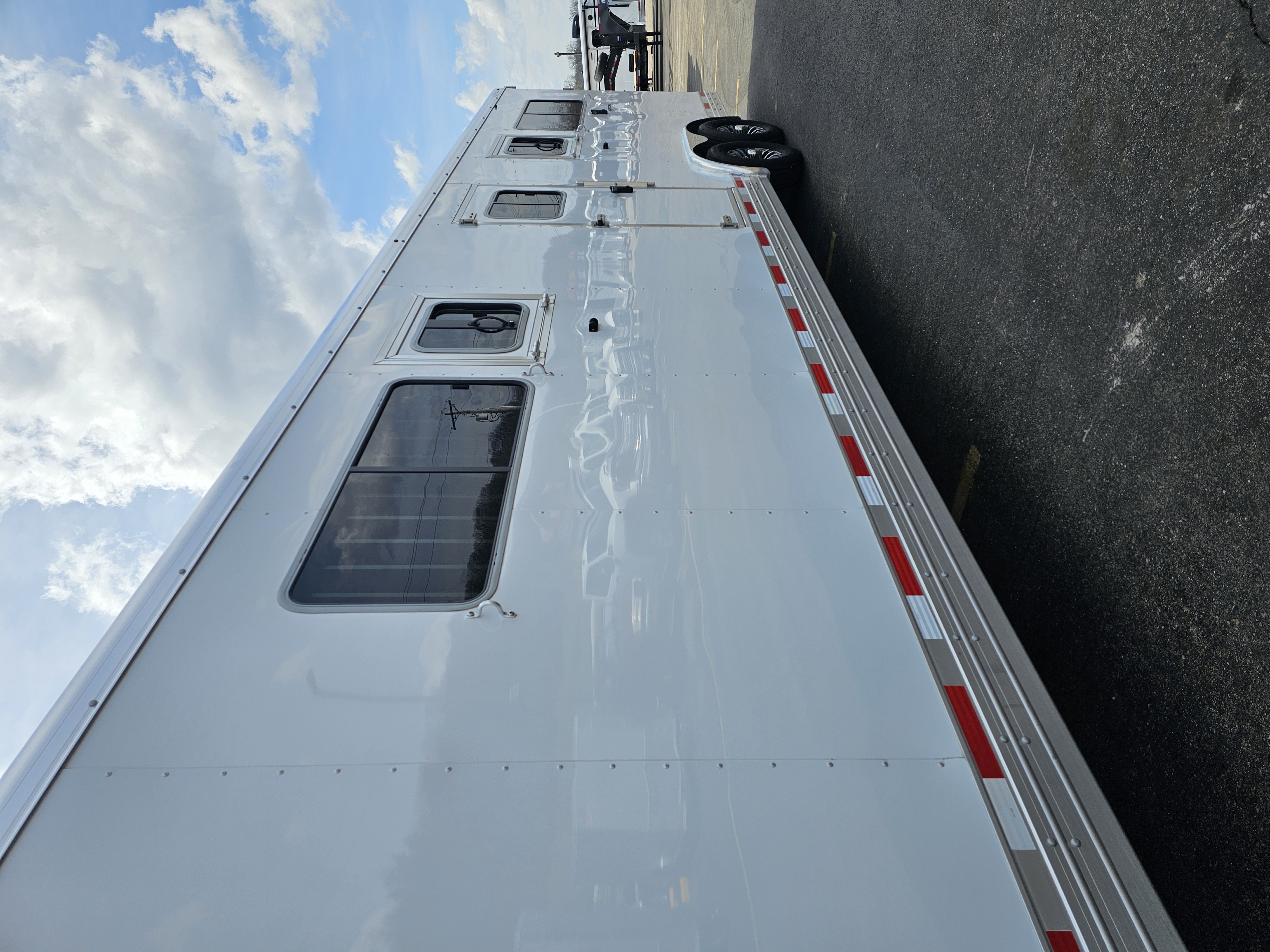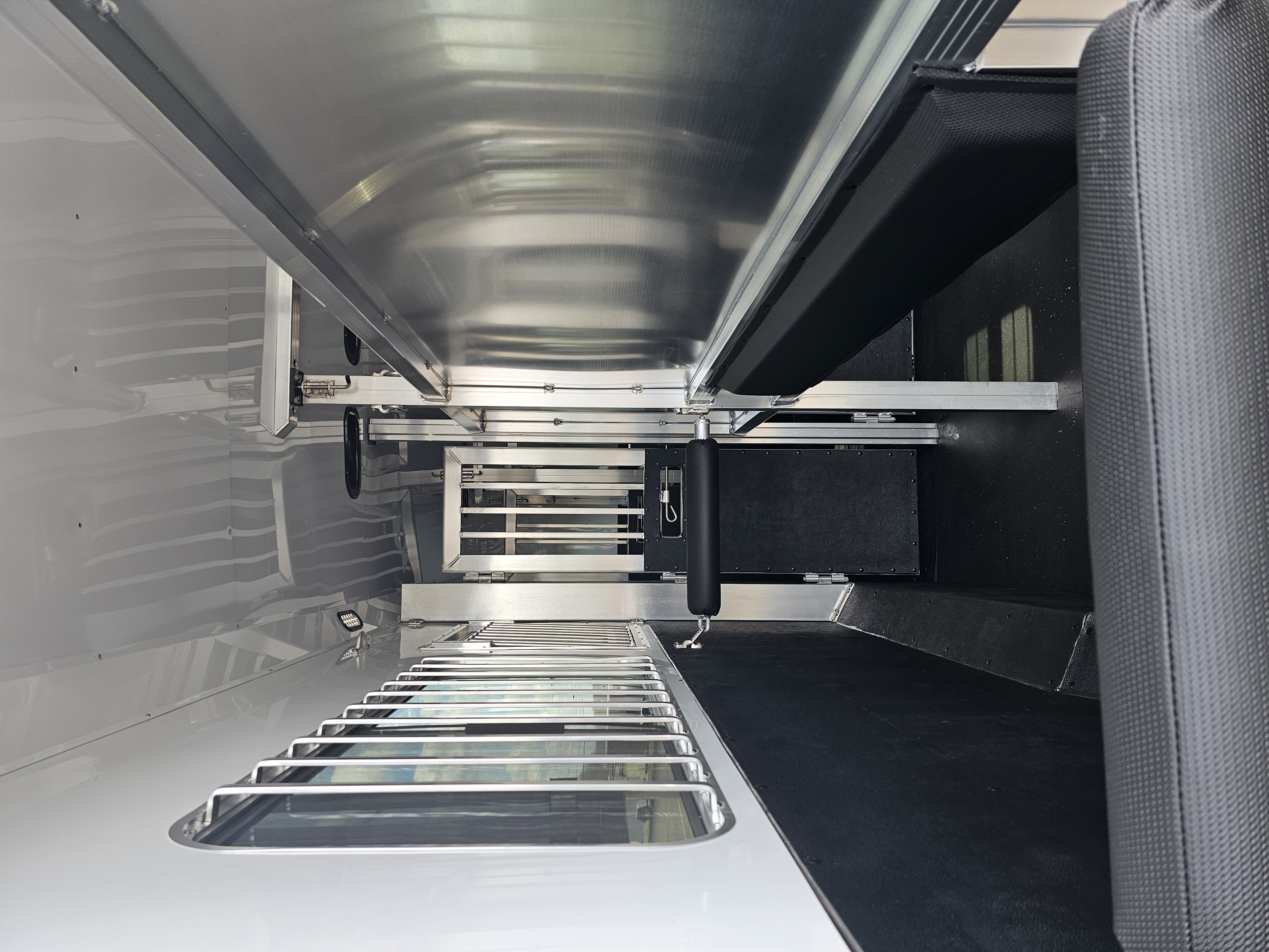 Horse area walls insulated and lined w/ white aluminum; Rubber installed 48″ high w/ white aluminum lining above; Aluminum kickplate behind rubber lining