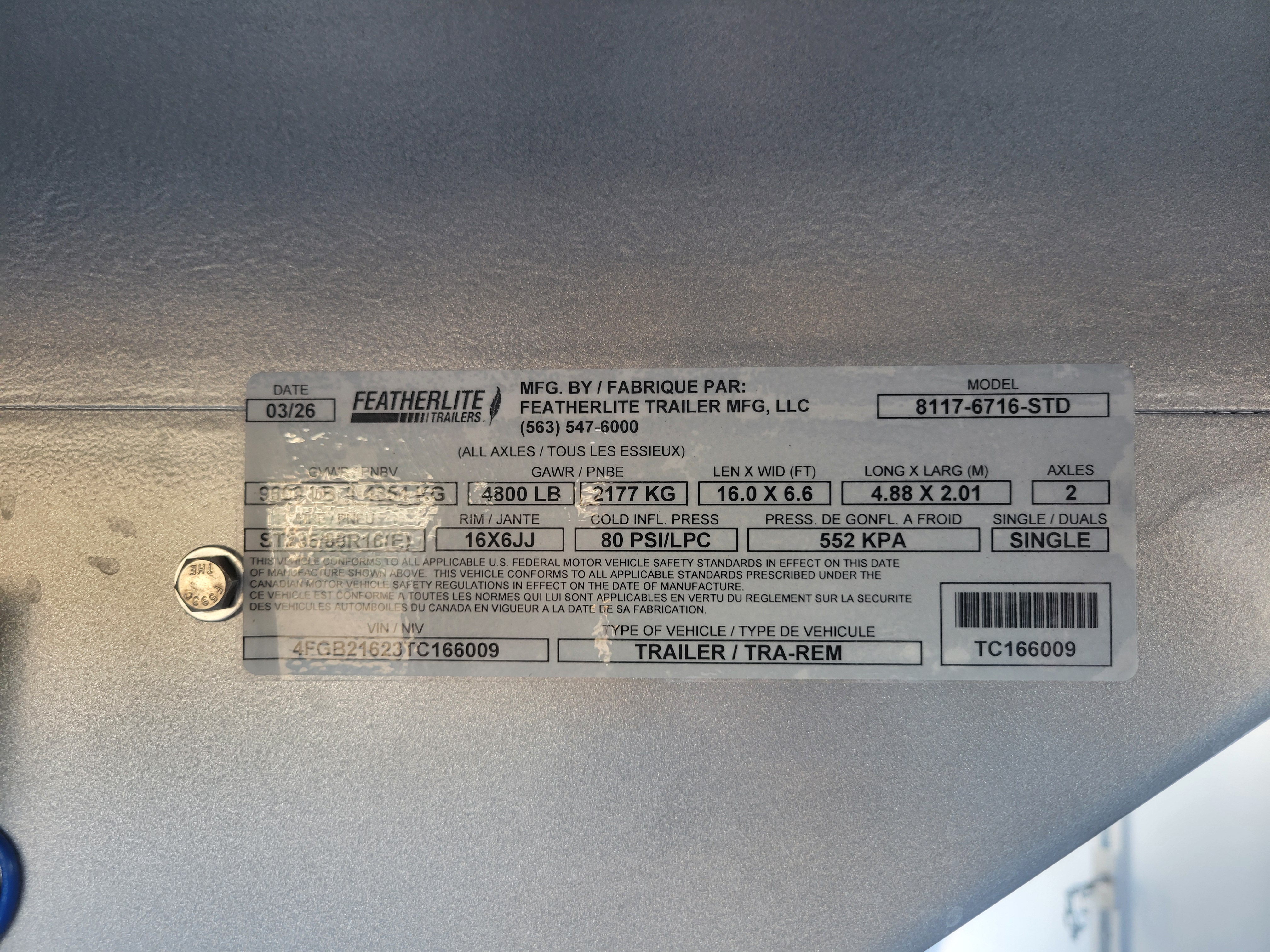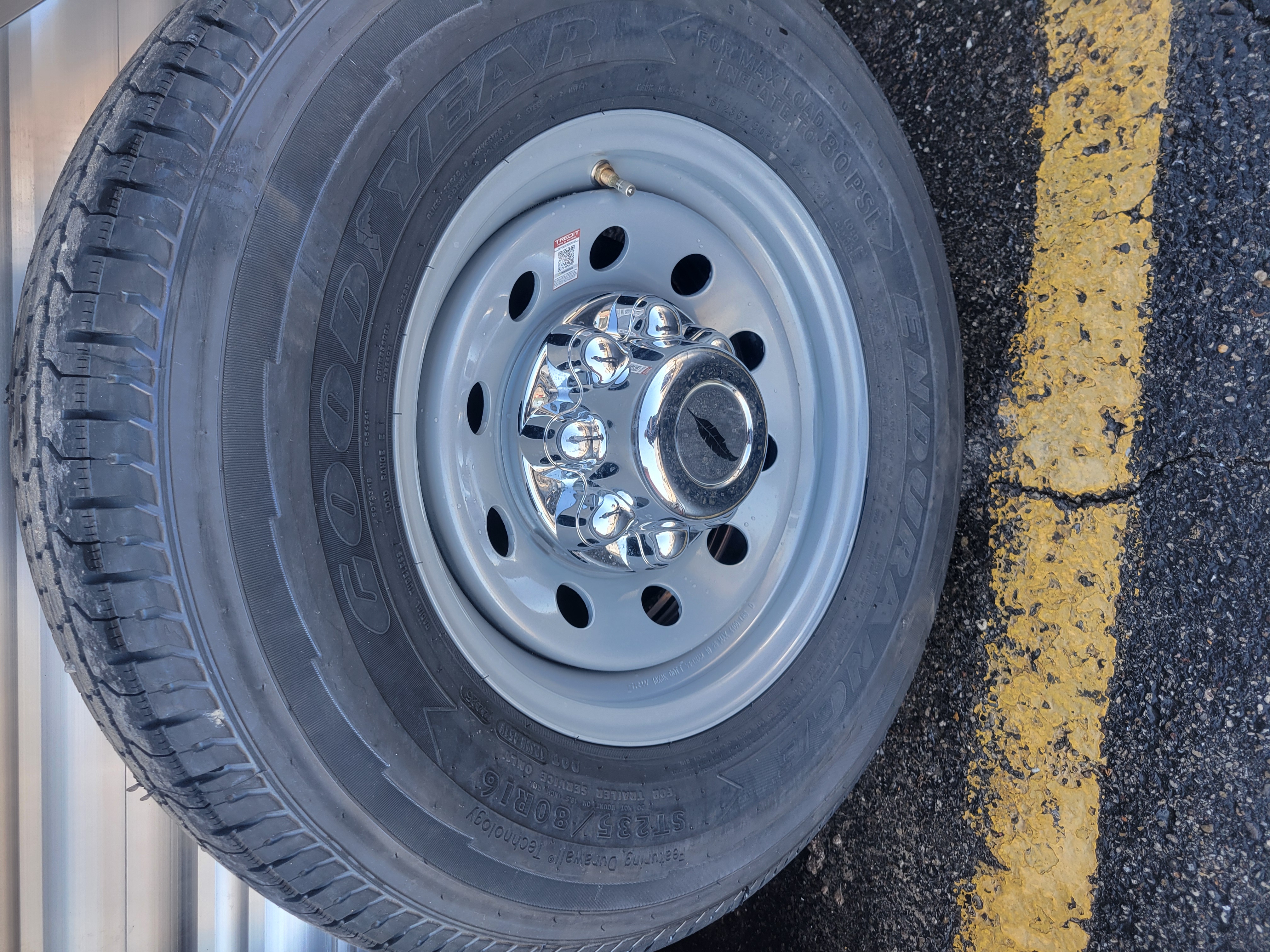 Tandem axle 4.8K rubber torsion. Includes GY tire rim ST235/80R16 LRE & 8 hole silver MOD wheel & hub cover