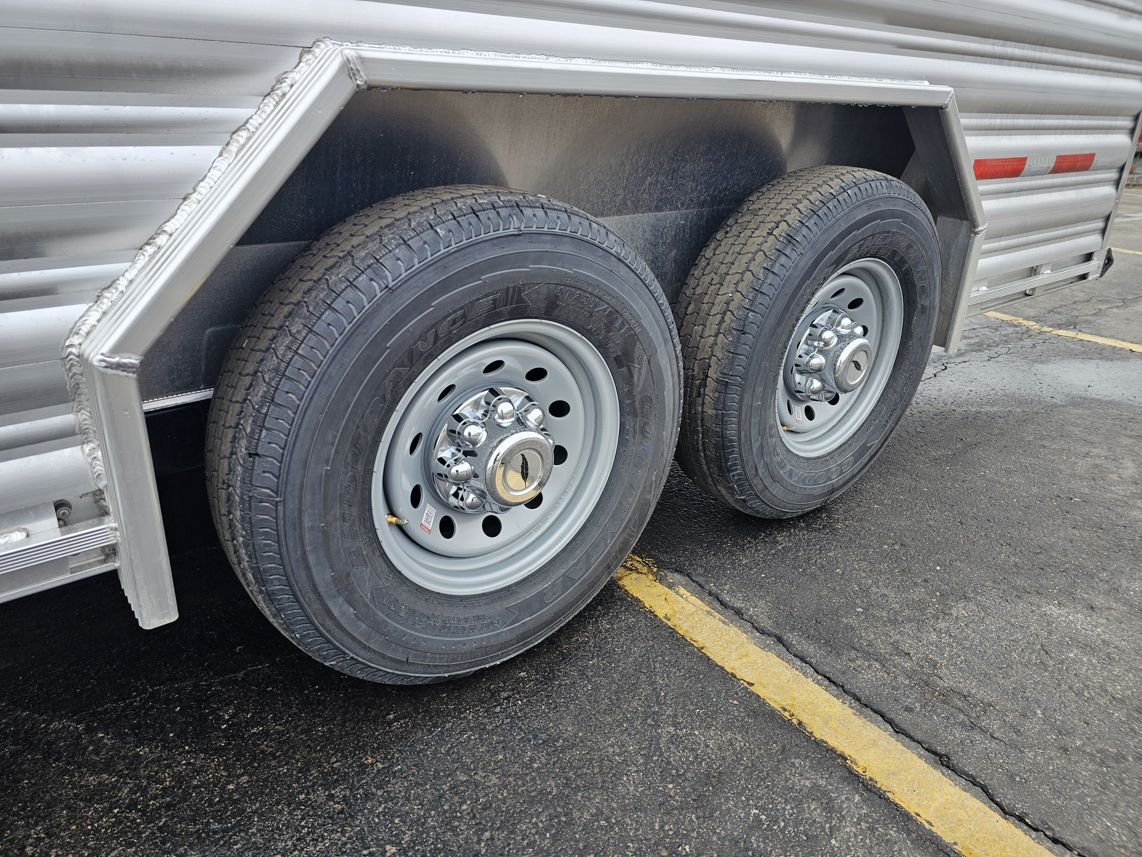 Tandem axle 7.0K rubber torsion. Includes (4) GY tire/rim ST235/80R16 LRE & 8 hole silver MOD wheel & hub cover