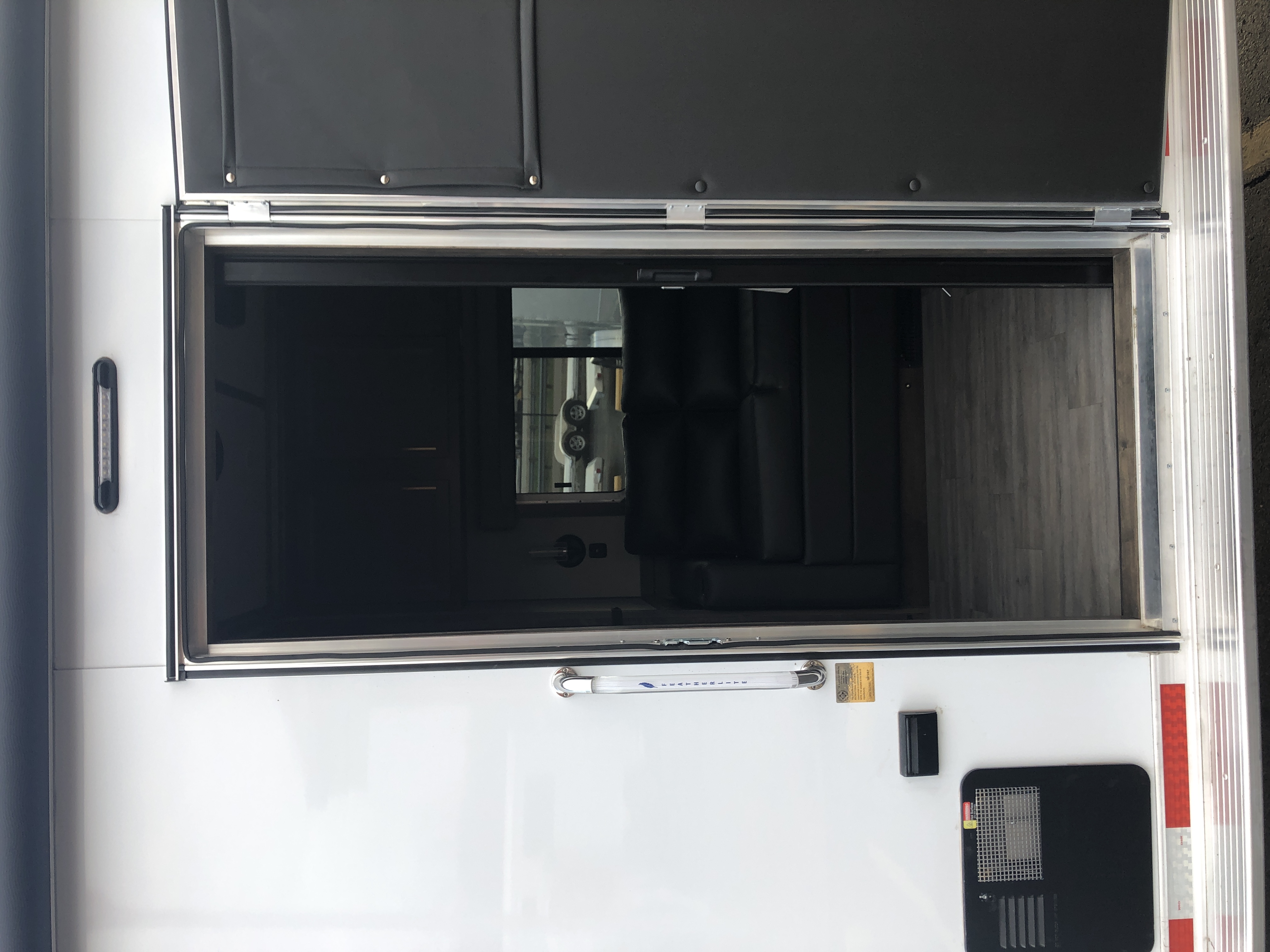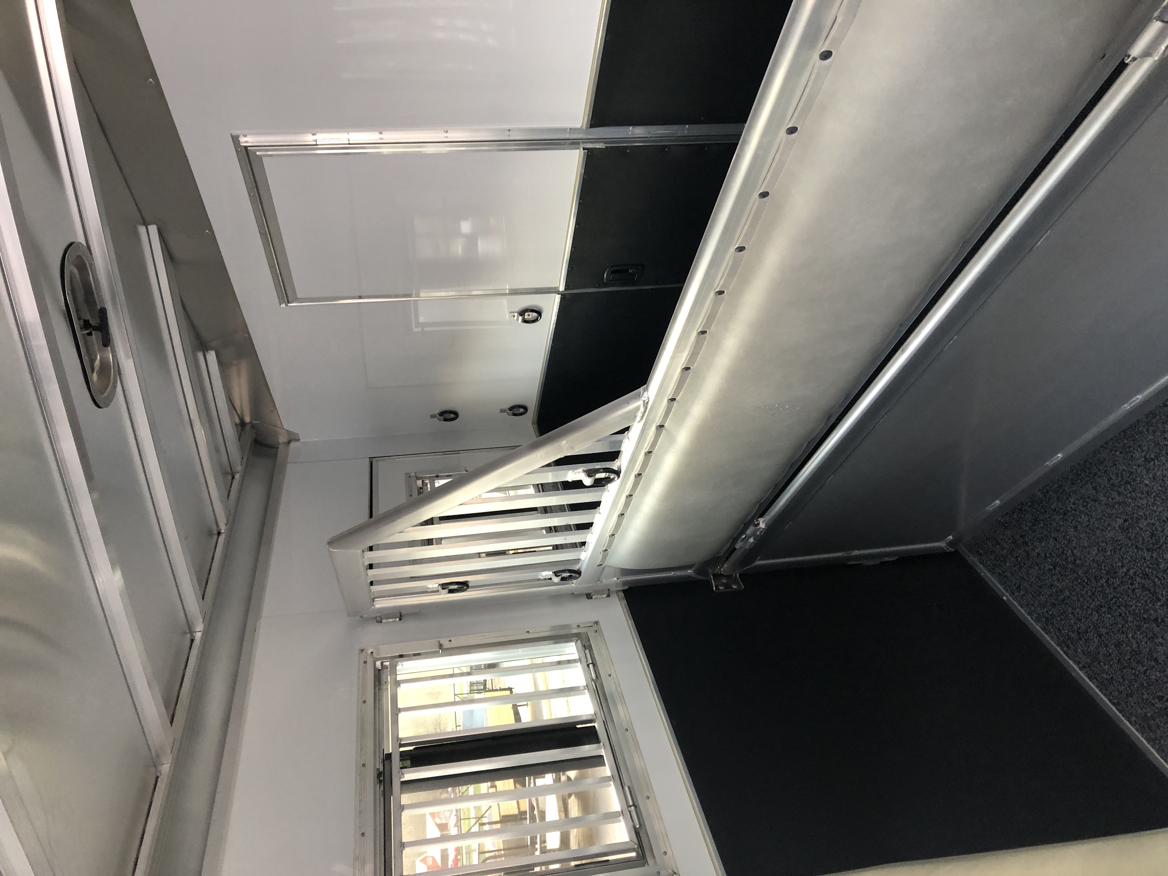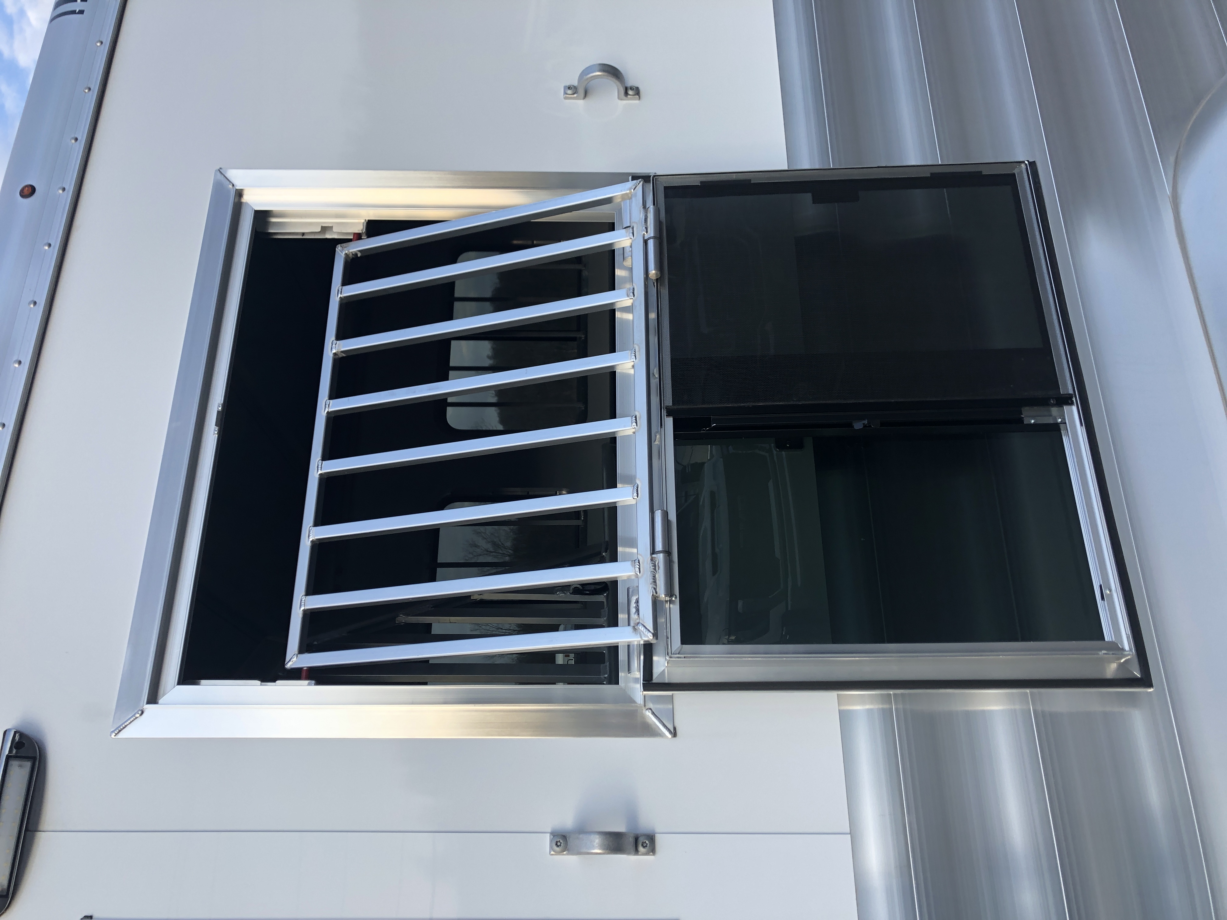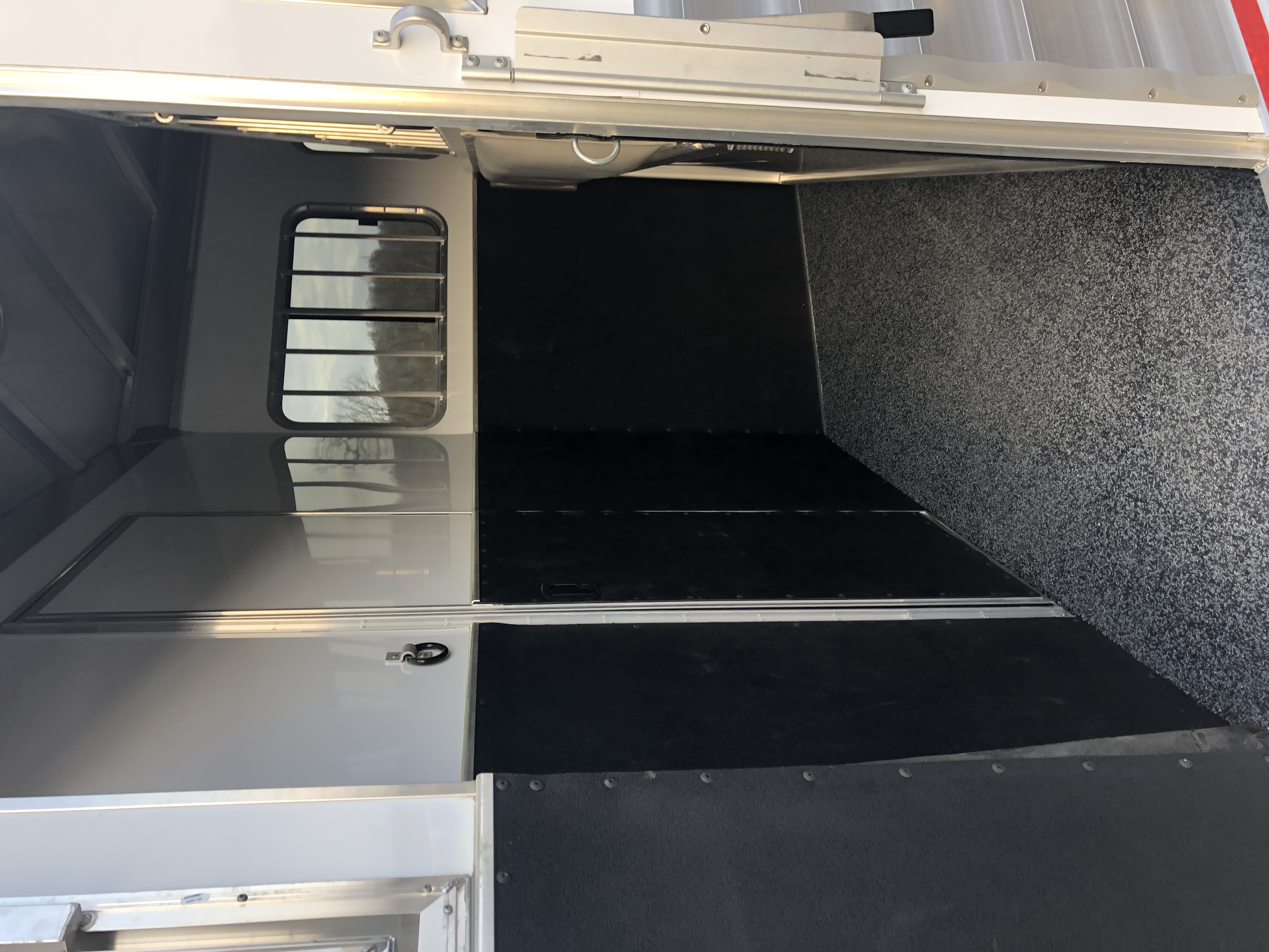 | Doors | 24″ walk thru door between LQ and horse area; 32″ x 74″ square camper door with window & deadbolt; Pocket screen door |