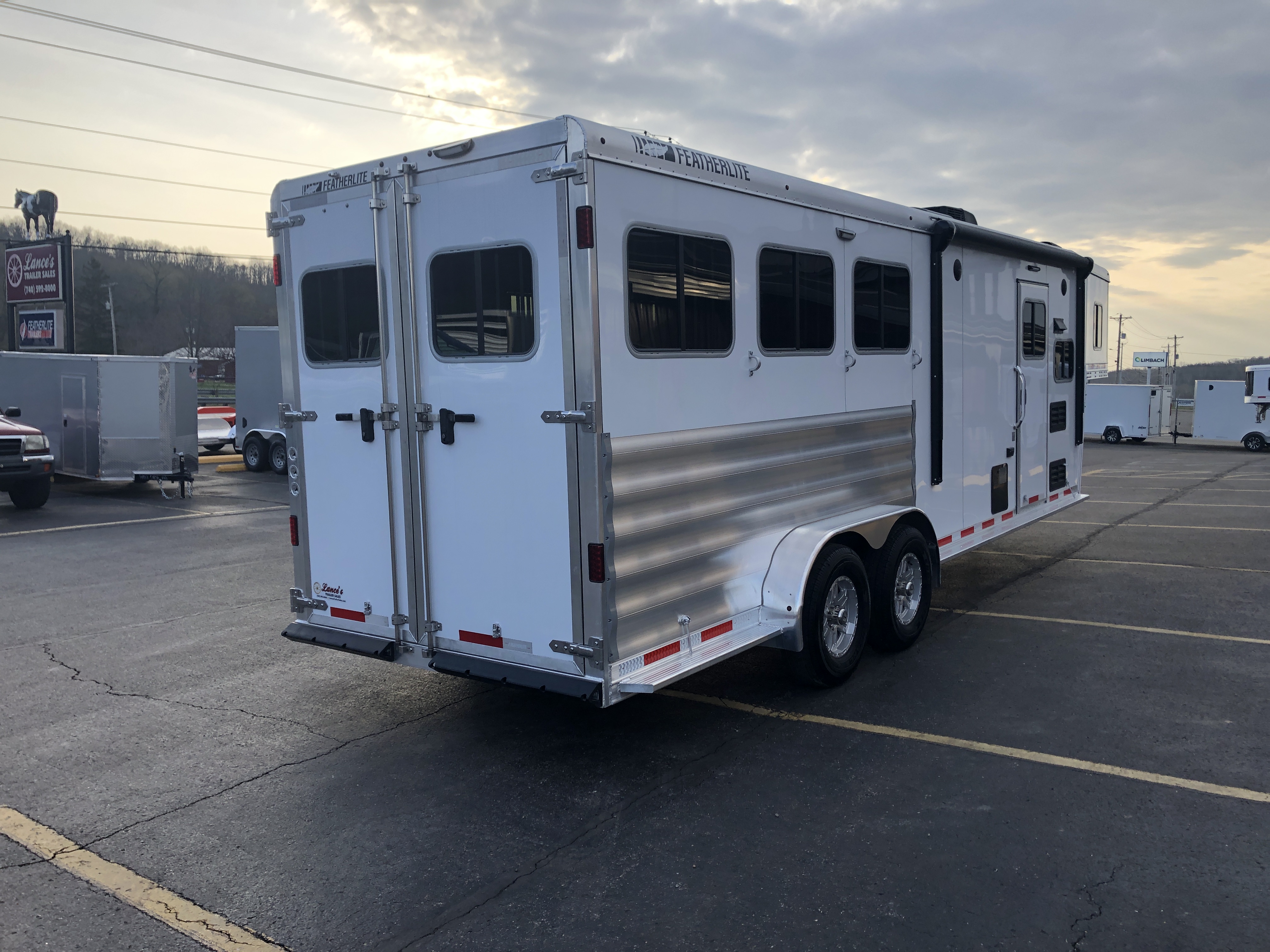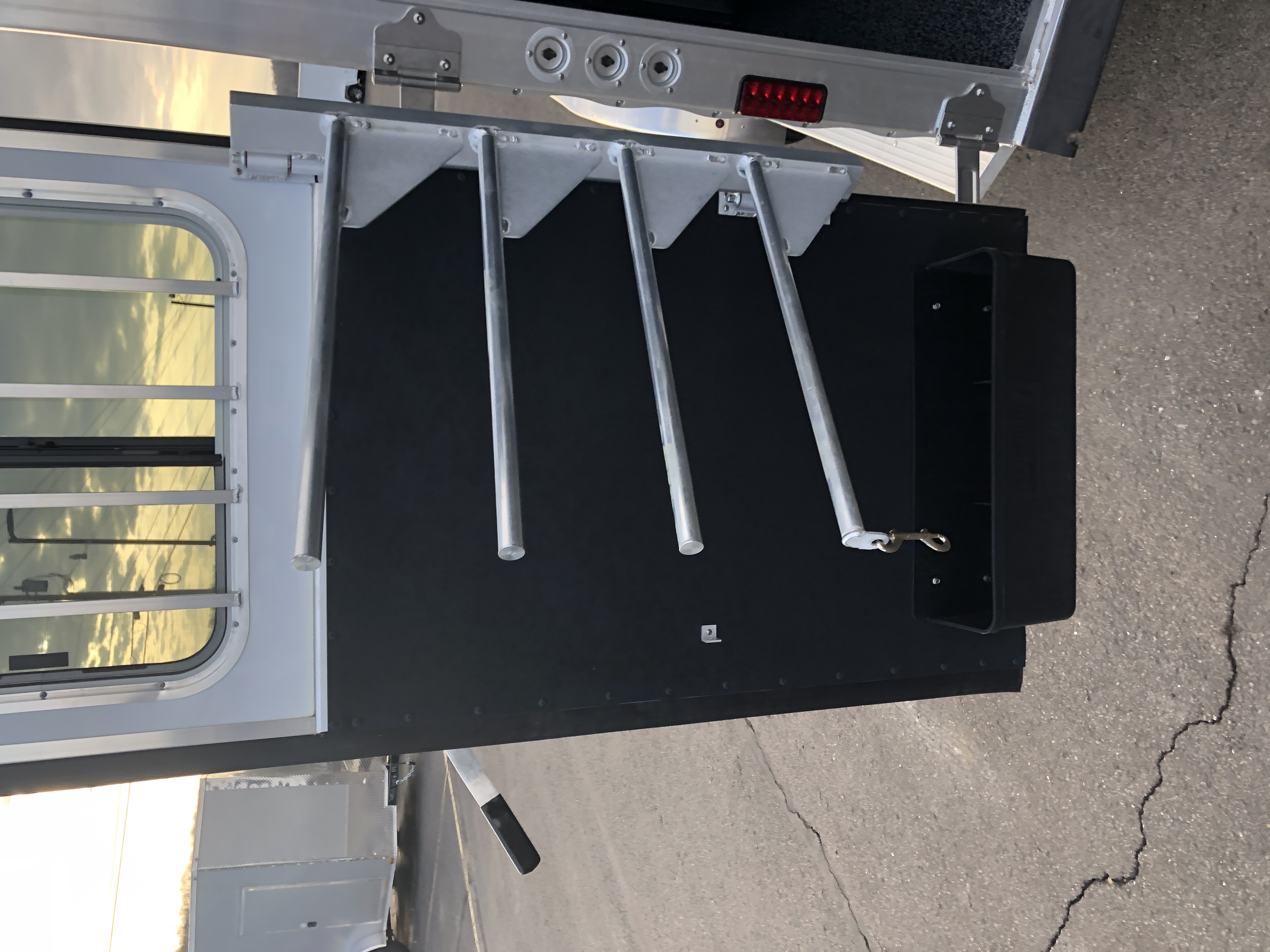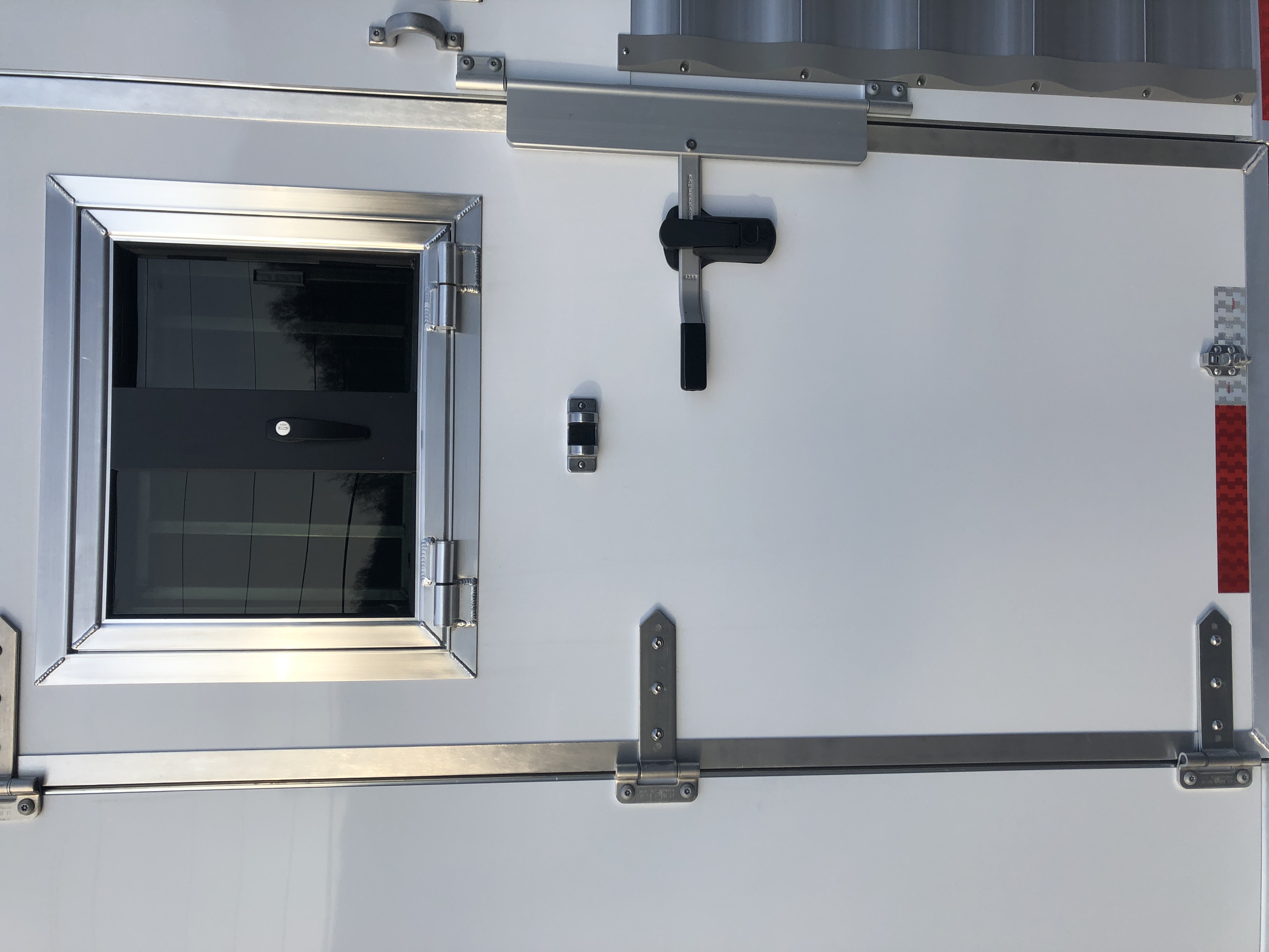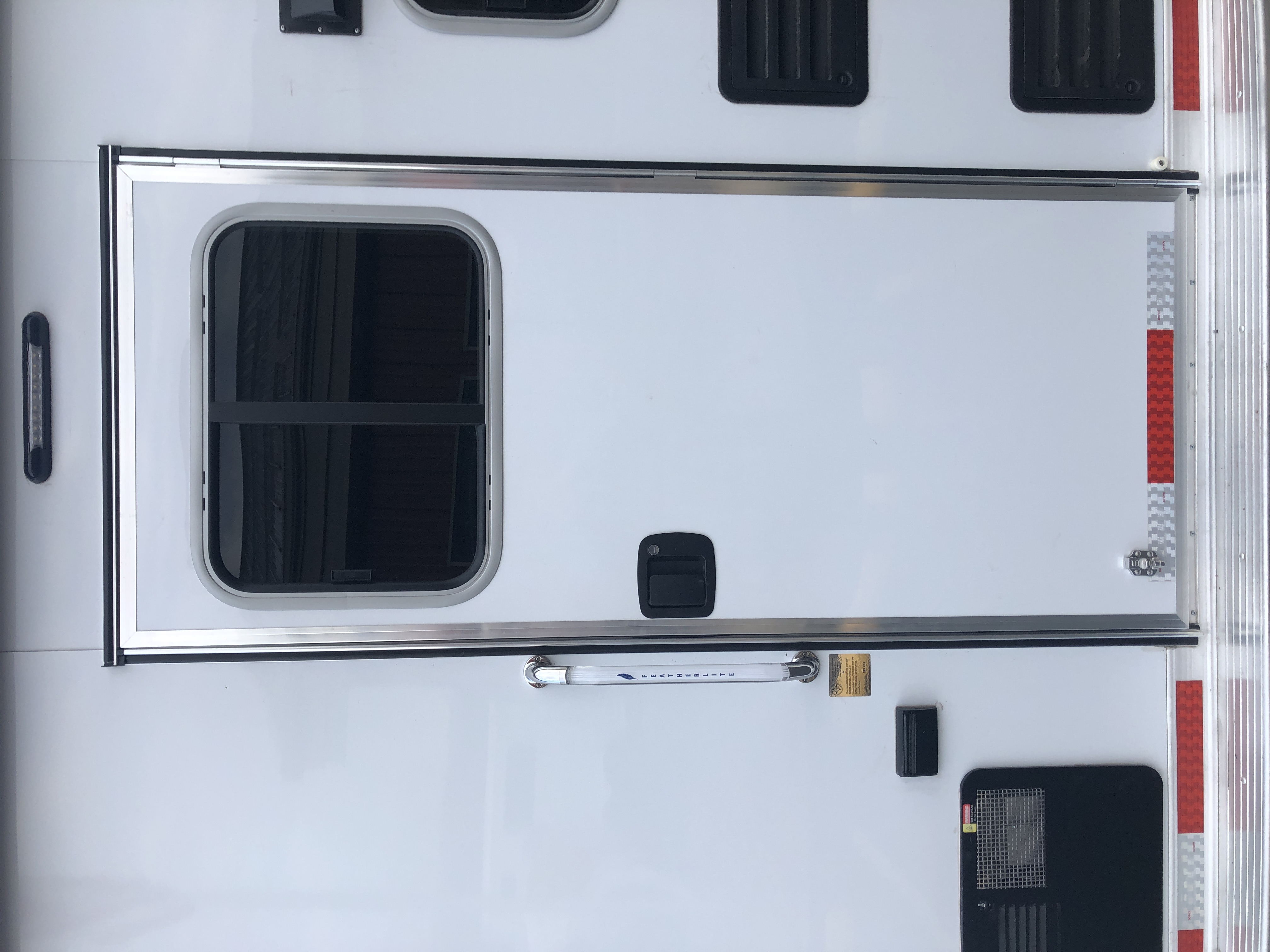 | Doors | 24″ walk thru door between LQ and horse area; 32″ x 74″ square camper door with window & deadbolt; Pocket screen door |