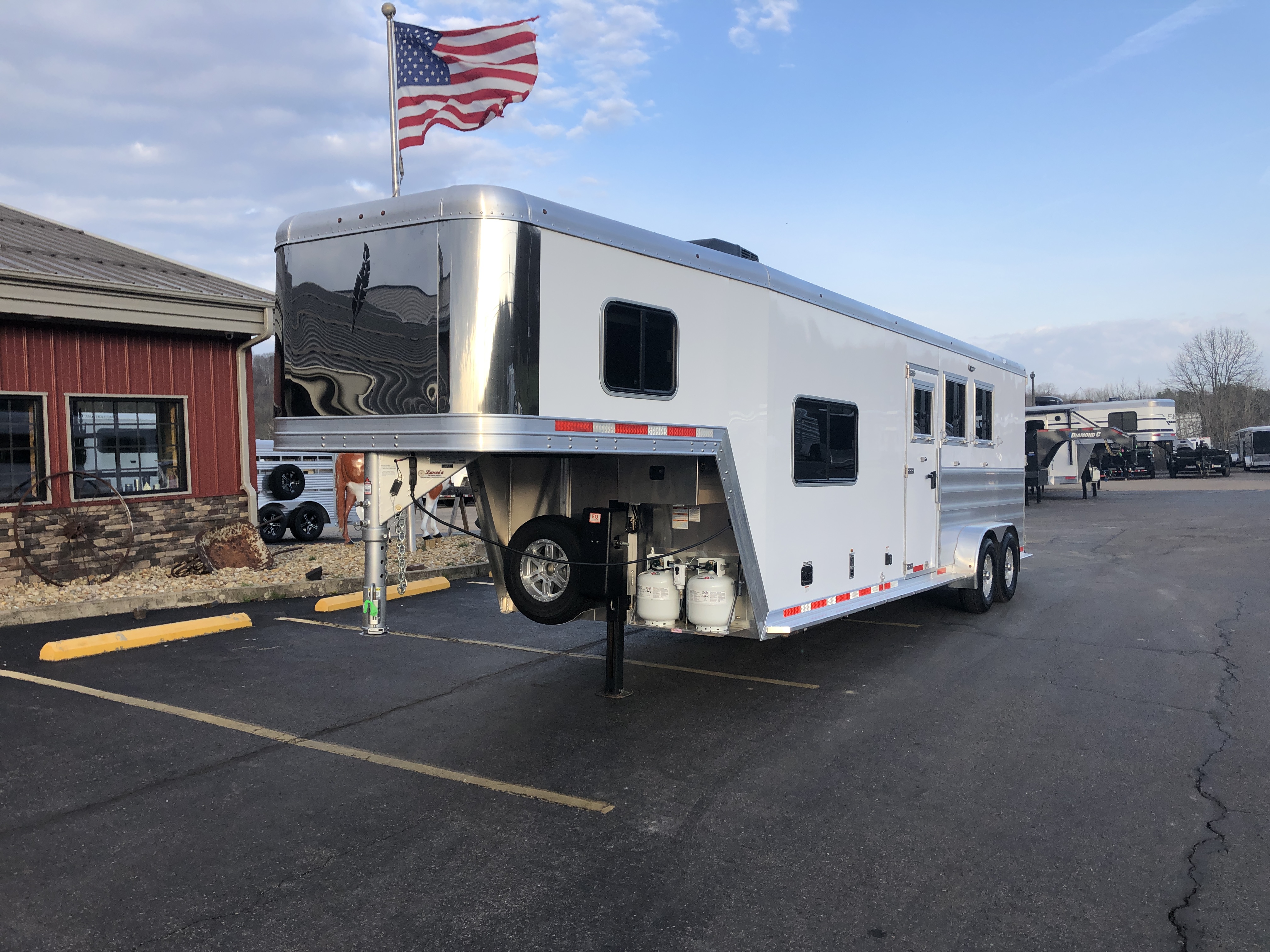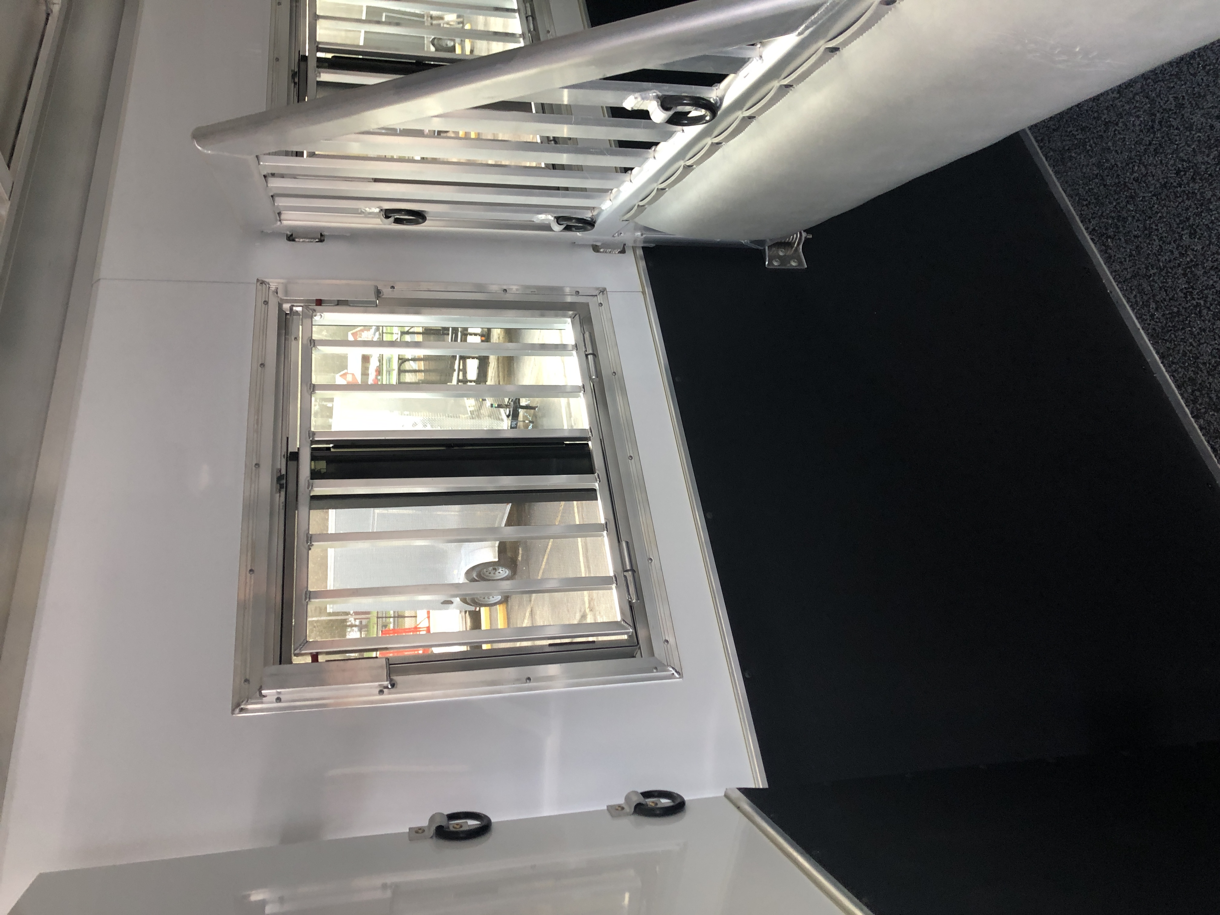 | Windows | Square drop down feed door with drop down bars in front of each horse; 34 1/4″ x 22″ window with bars behind each horse; Two 26″ x 19″ windows in the gooseneck; 26″ x 15″ curbside window and 48″ x 24″ streetside window in living quarters |
