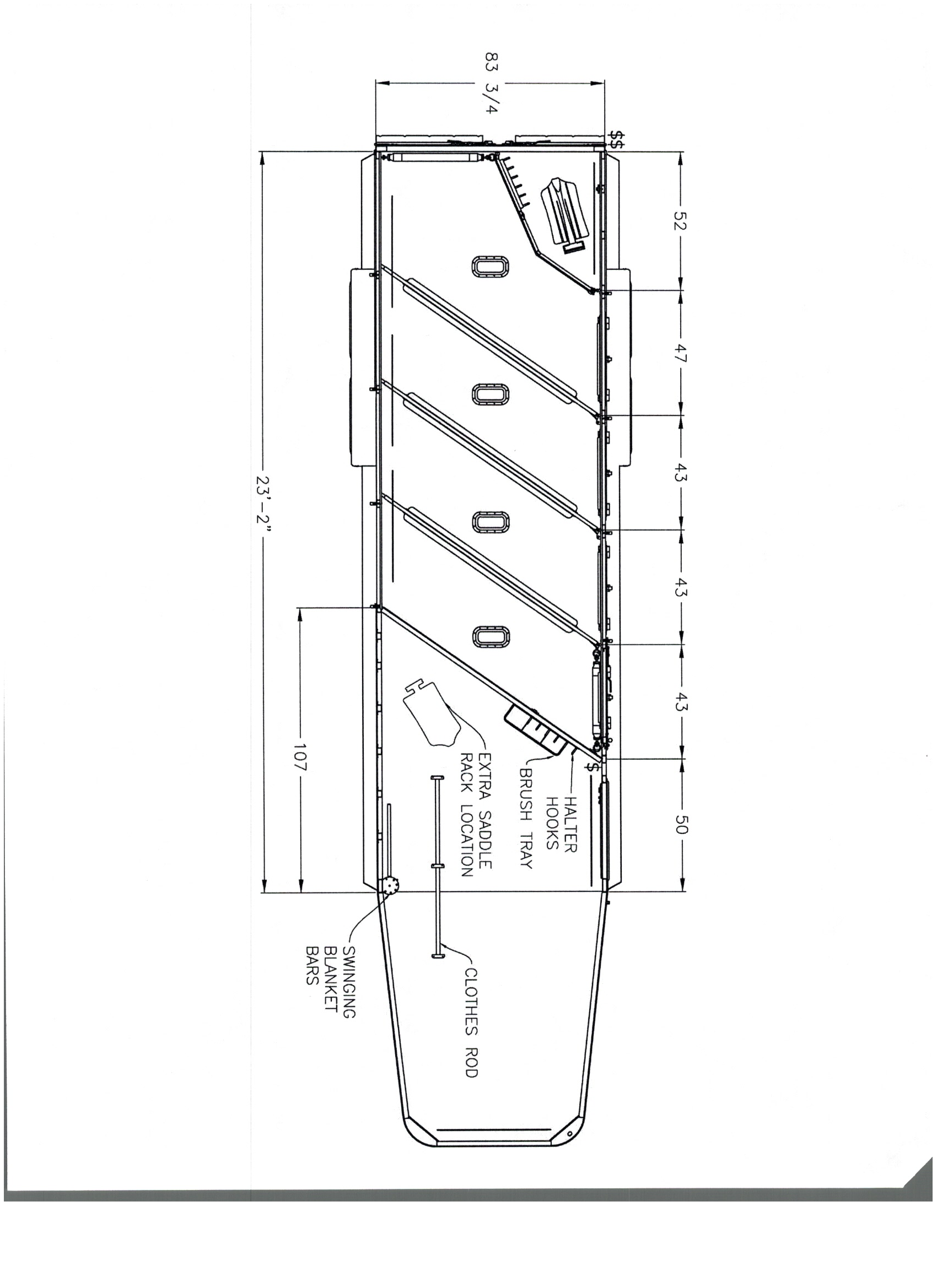 Unload Doors: Side unload door in front of first horse with nylon strap (not available on 2H)