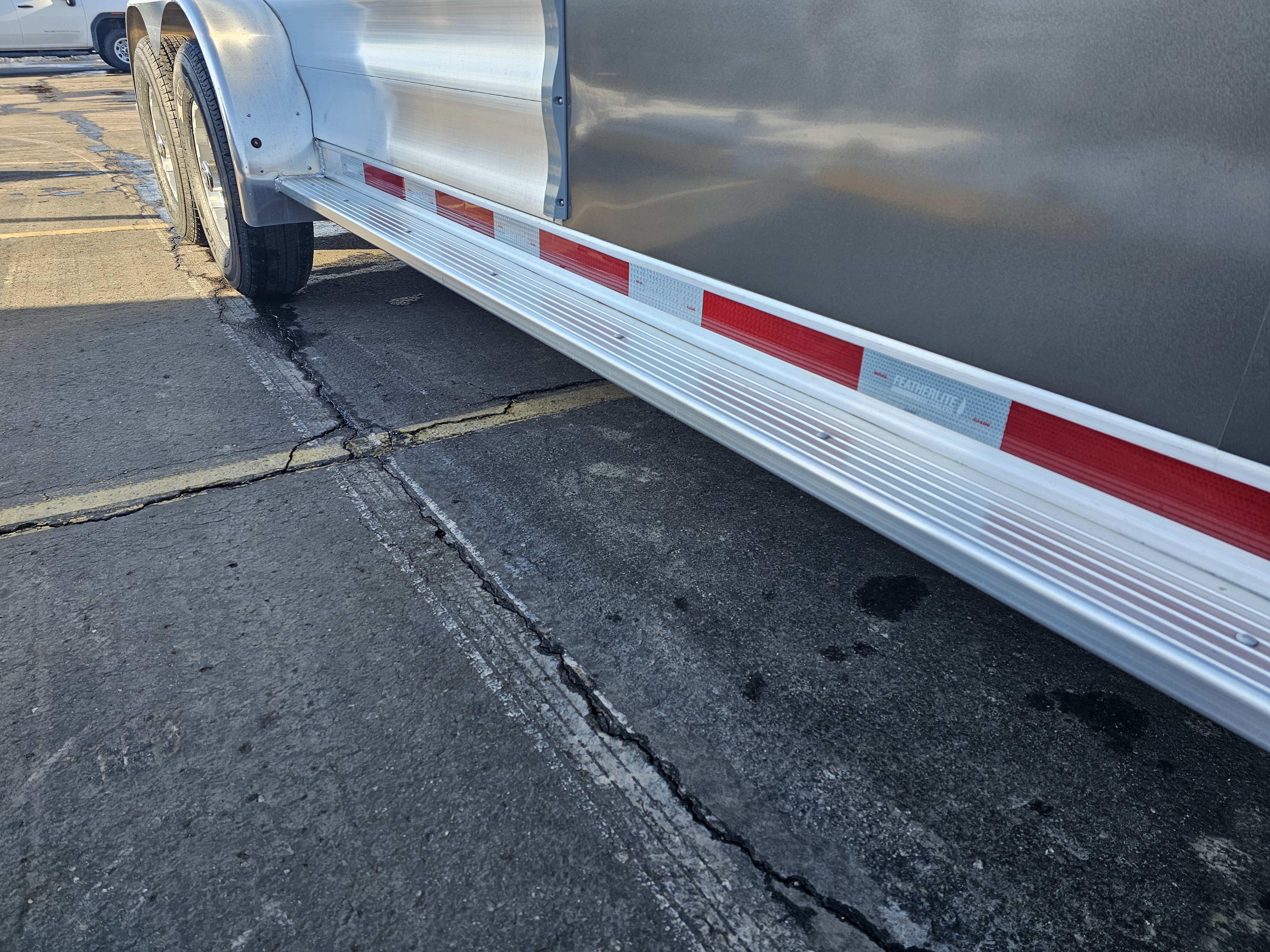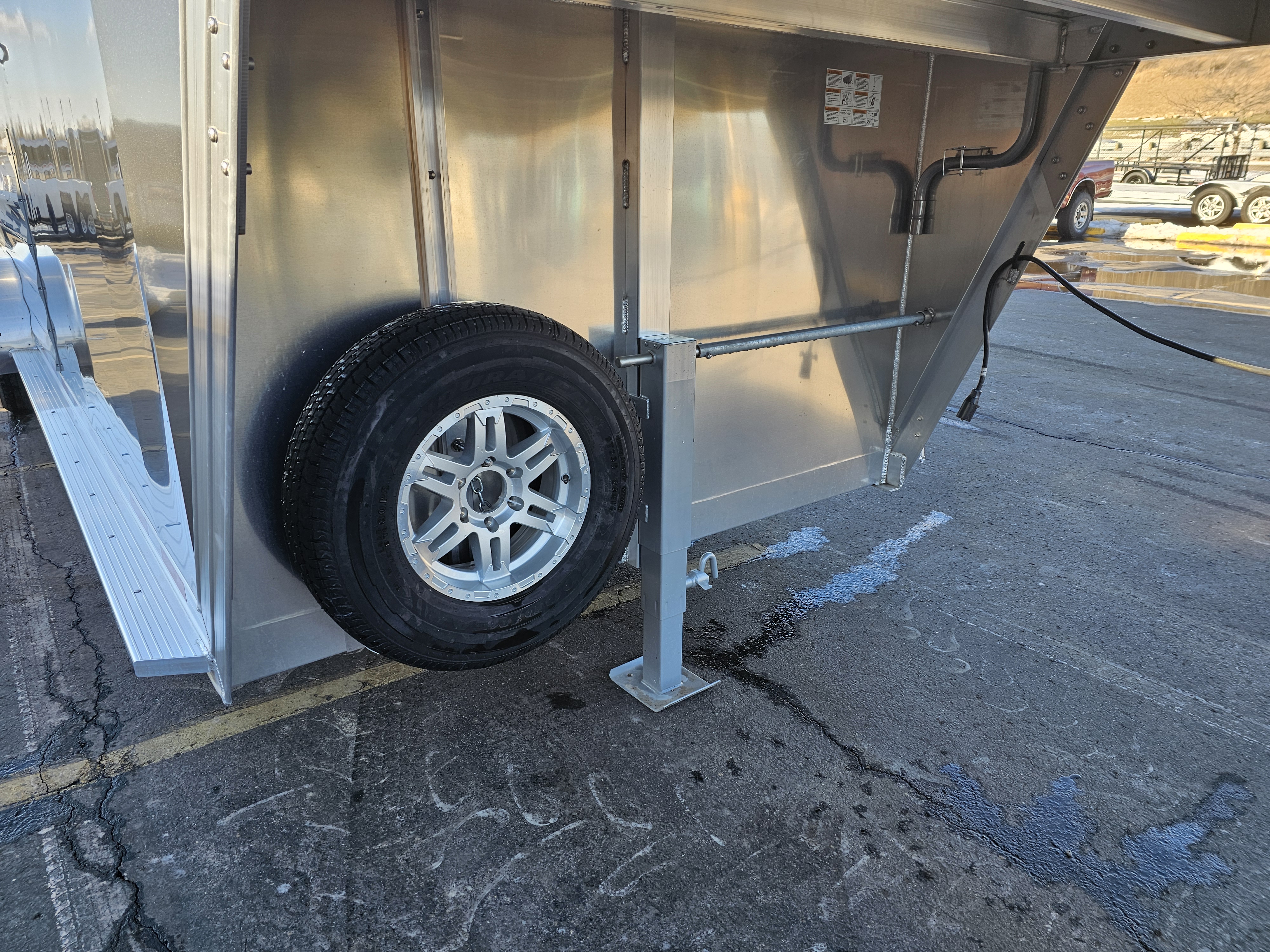 Exterior Sides: Charcoal .040 rivetless aluminum exterior sheets with aluminum wave panels below; Trailer includes stainless steel front sheets and front corners