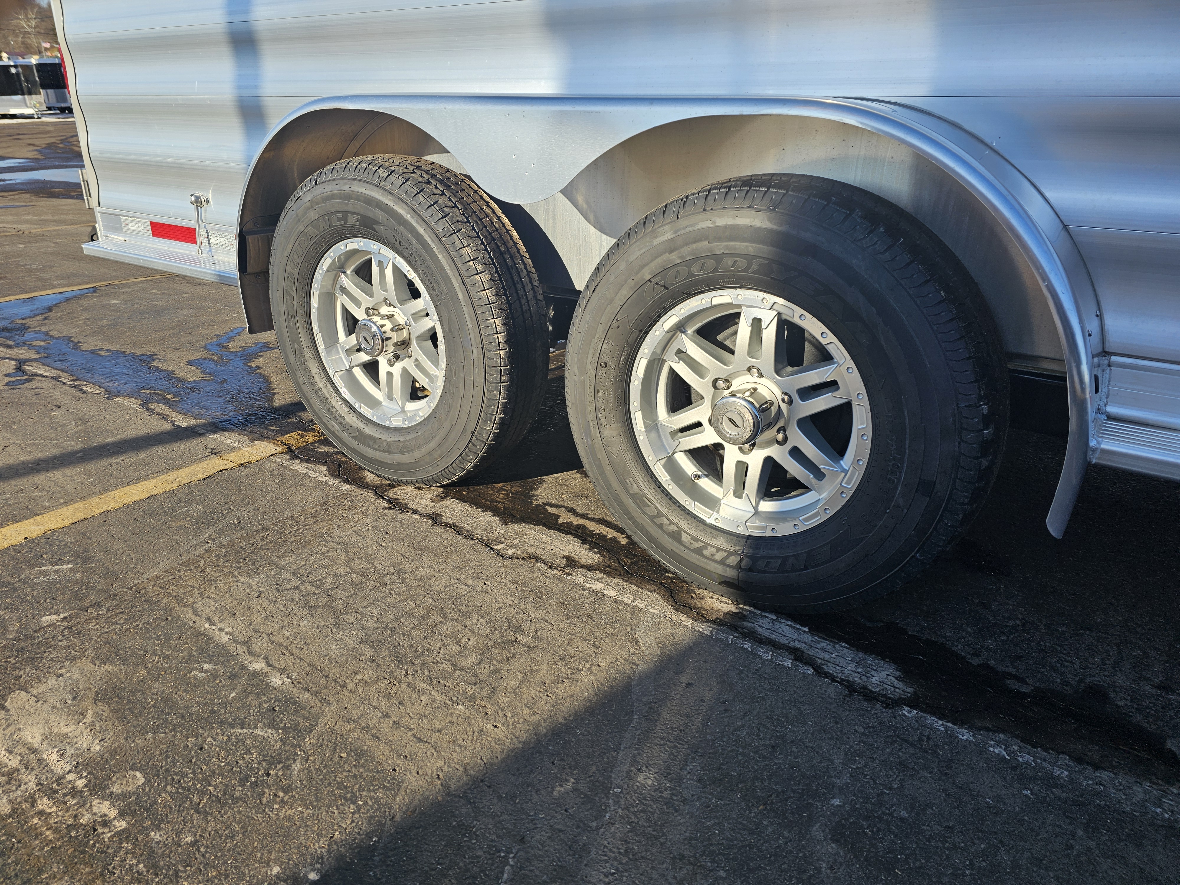 Tire/Rim: 16″ 6-hole silver aluminum wheels with Goodyear ST235/80R16 Load Range E tires