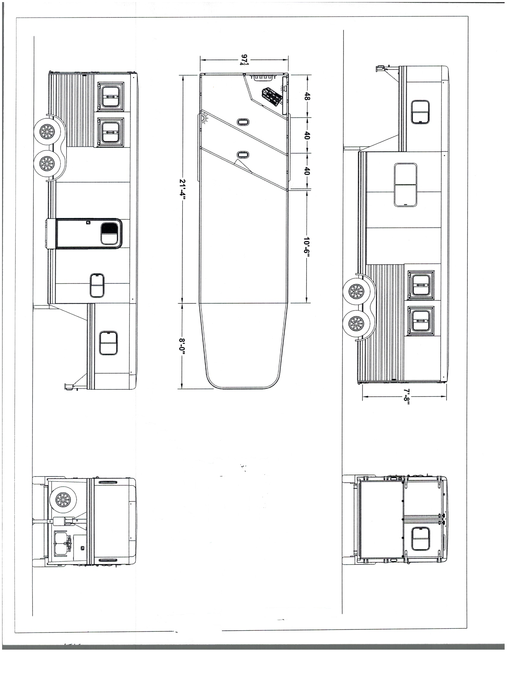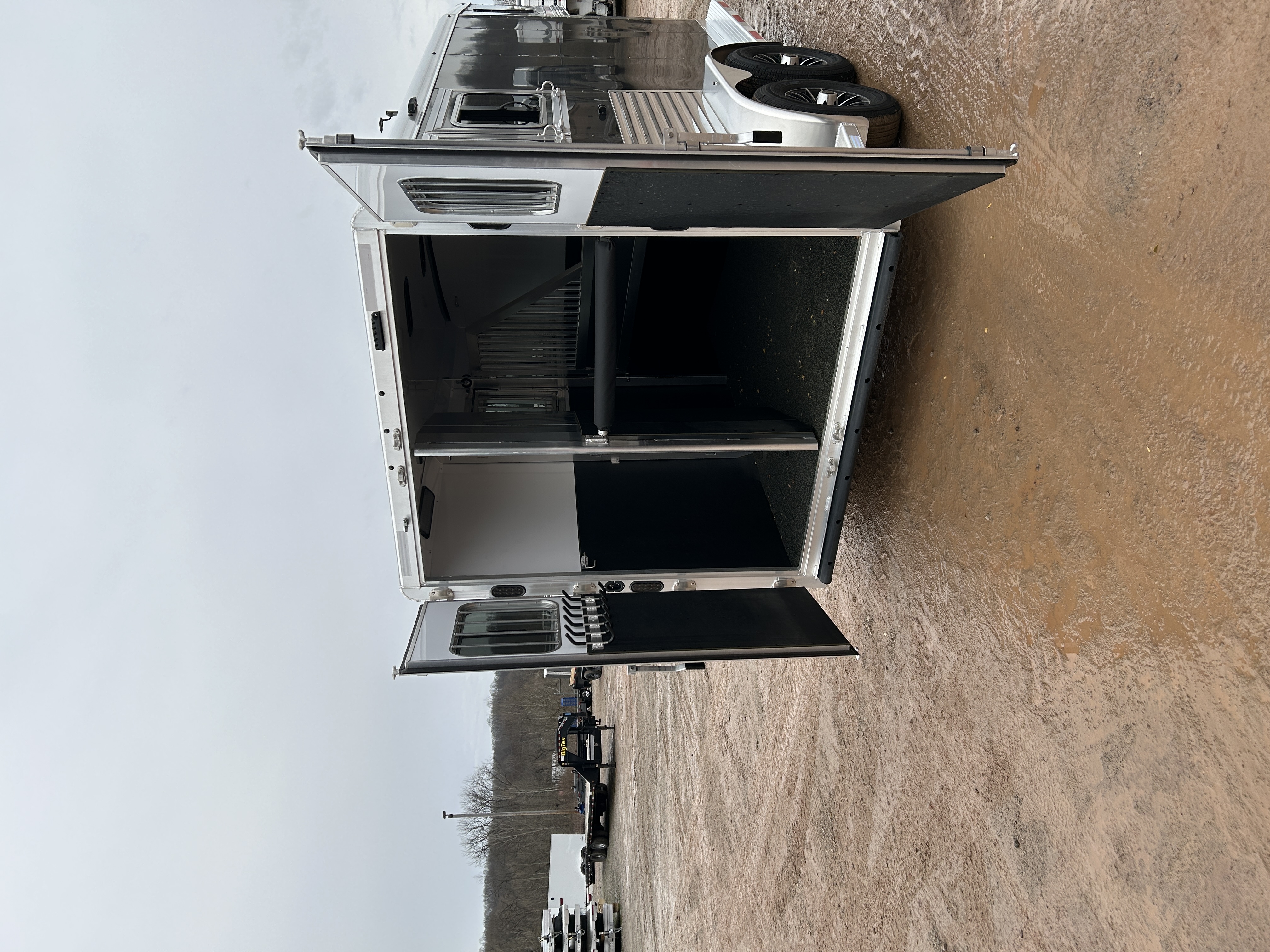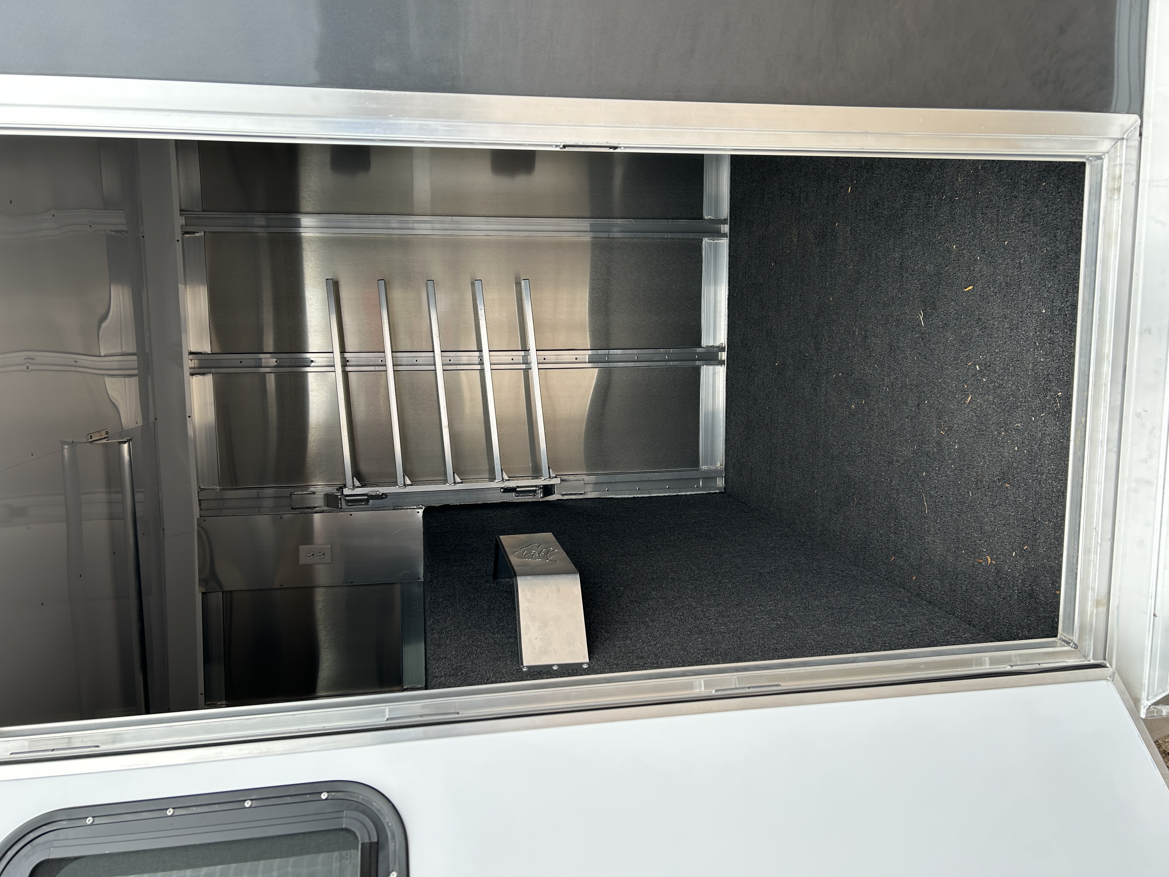 - Streetside 27″ x 31″ heavy-duty feed doors w/ drop bars and curbside 27″ x 31″ windows w/ bars and screens; One window in rear door